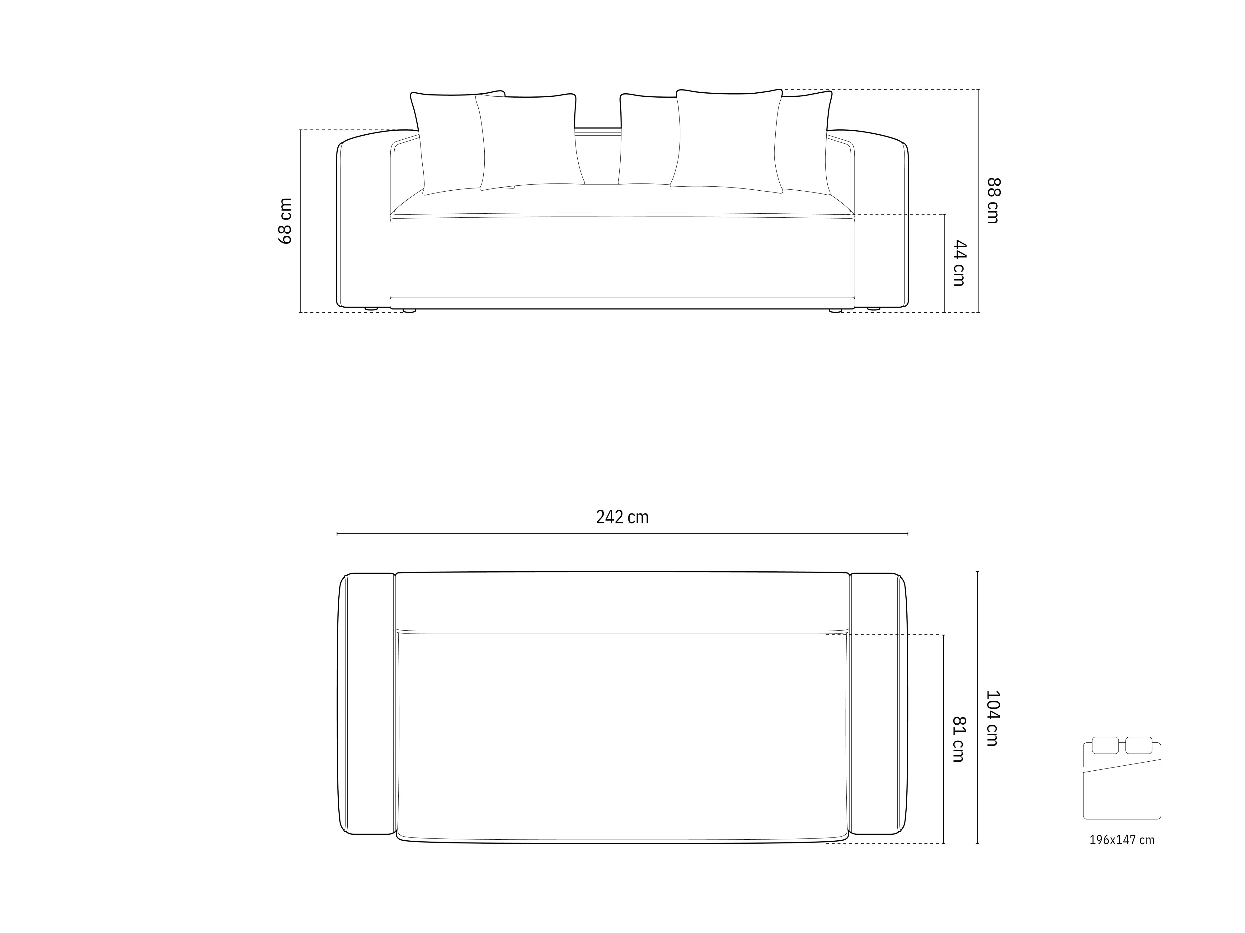 Schlafsofa Ribes ist eine elegante und praktische Lösung, die Komfort mit Funktionalität verbindet. Dank des einfach zu bedienenden Ausziehmechanismus und der großen Liegefläche eignet sich dieses Schlafsofa sowohl für den täglichen Gebrauch als auch für den Empfang von Gästen. Ein zusätzlicher Vorteil ist der Bettkasten, der es ermöglicht, Ordnung im Wohnzimmer zu halten und den Raum optimal zu nutzen.