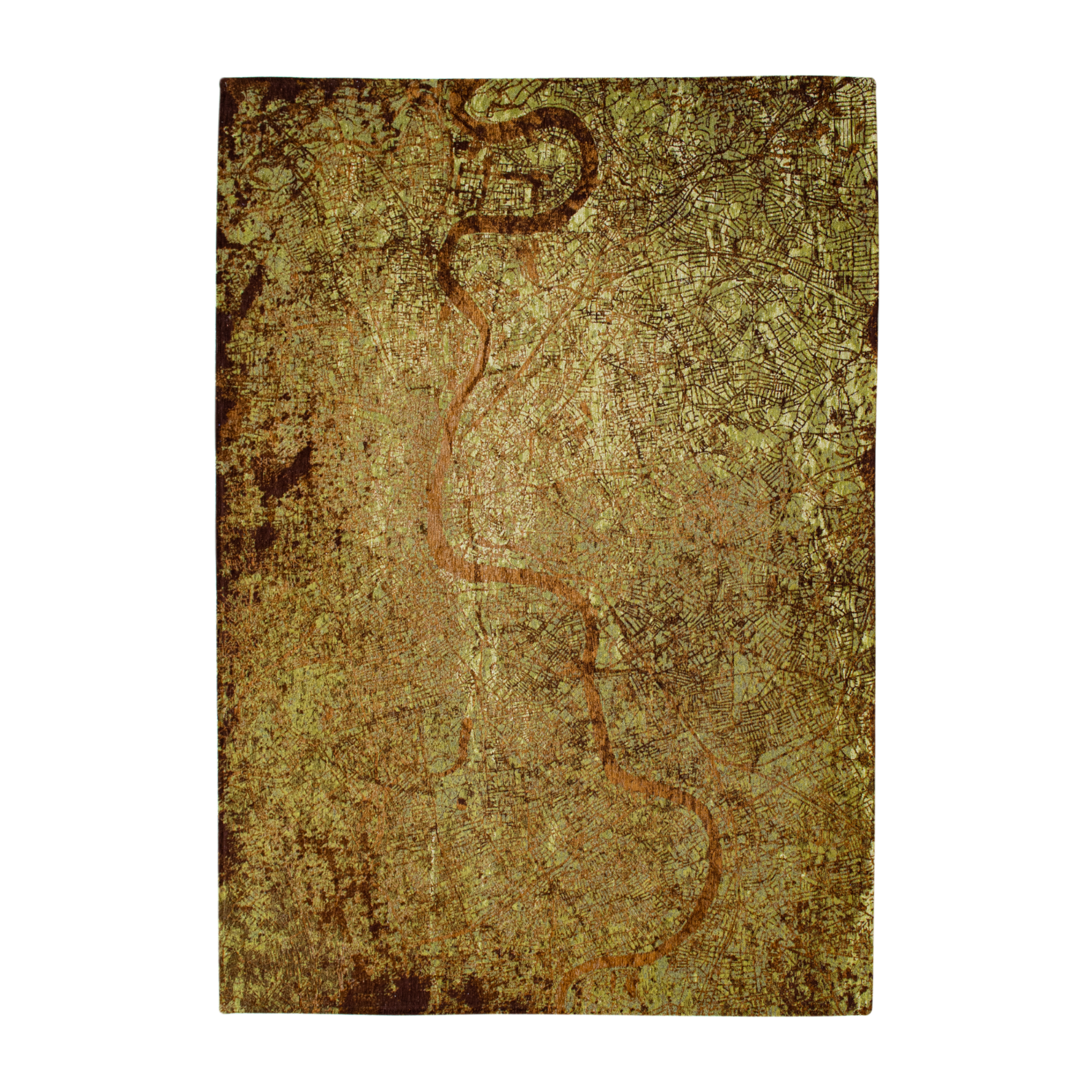 Grünbrauner moderner Teppich Cities London Green Meadows wird Sie mit seinem Design sicherlich erfreuen. Die Kollektion, die von Aussichten aus einer Vogelperspektive inspiriert ist, kombiniert mysteriöse Ästhetik mit Transparenz und erzeugt ein einzigartiges Muster, das die hypnotisierende Atmosphäre alter Karten hervorruft.