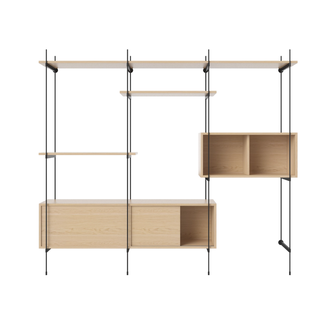 Die schlanke und moderne Form ermöglicht eine Personalisierung, sodass Sie ein System erstellen können, das perfekt zu Ihren Vorlieben passt. Inspiriert von fertigen Kombinationen oder wählen Sie einzelne Lösungen, die am besten in Ihren Raum passen.