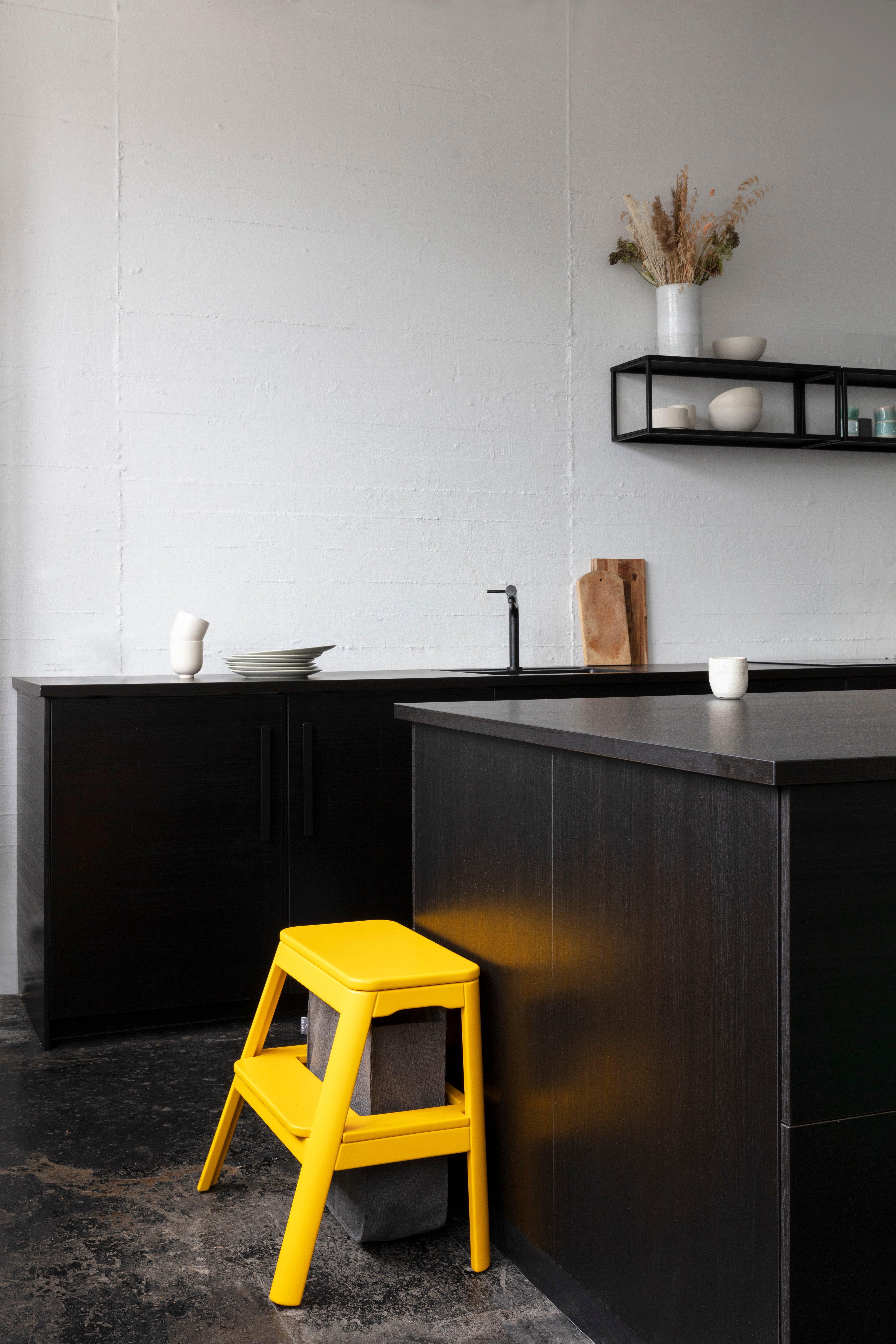 Hocker Step It Up ist nicht nur ein praktisches Werkzeug, mit dem Sie hohe Regale in der Küche erreichen können, sondern auch die Inspiration, um die Pflegestandards für die Umwelt zu erhöhen - daher der Name.