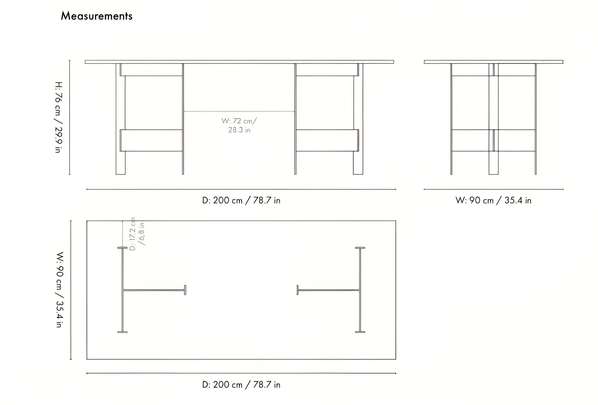 Dank seiner soliden Konstruktion und minimalistischen Form verbindet der Lager -Tisch Funktionalität und raffinierte Ästhetik. Transparente Sicherheitsabdeckungen ermöglichen die sichere Platzierung der Tischplatte auf Aluminiumböcken und gewährleisten so Stabilität und Langlebigkeit.
