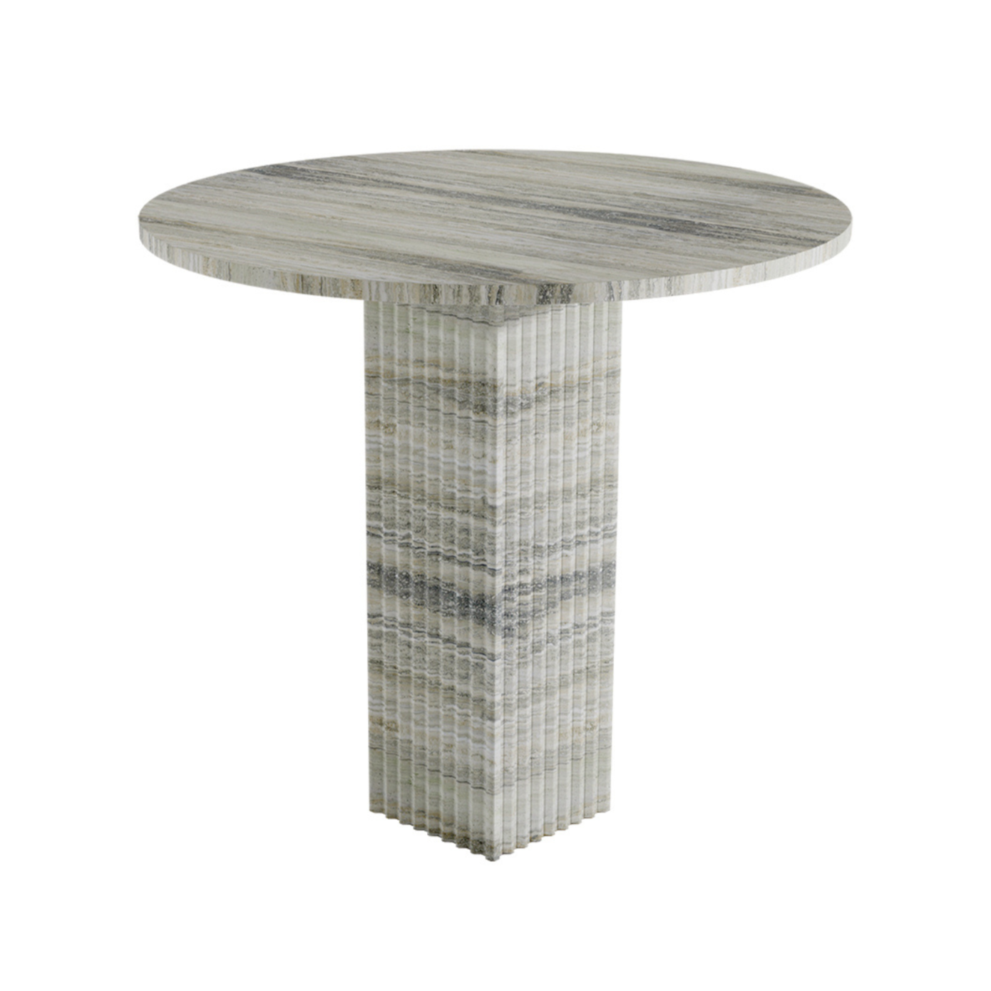 Aus natürlichem Travertin gefertigt, vereint der Tisch Soho zeitlose Eleganz und Langlebigkeit. Jedes Exemplar ist aufgrund der natürlichen Unterschiede in den Farbtönen und der Anordnung der Steinflecken einzigartig, was ihm einen unverwechselbaren Charakter verleiht. Er eignet sich perfekt sowohl für moderne Innenräume als auch für klassische Arrangements und unterstreicht deren luxuriösen Stil und raffinierten Geschmack.