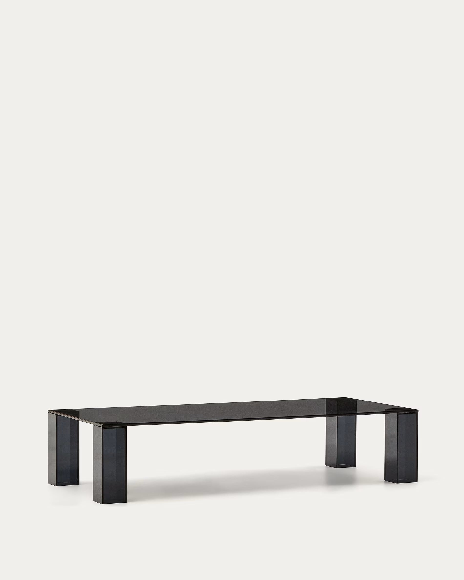 Der Couchtisch Adularia ist ein raffiniertes Möbelstück aus dunkelgrauem, gehärtetem Glas, das einen modernen und eleganten Akzent in Ihr Zuhause bringt. Sein Design zeichnet sich durch die unsichtbare Verbindung zwischen der Tischplatte und den Beinen aus, was das Gesamtbild äußerst leicht und modern erscheinen lässt.