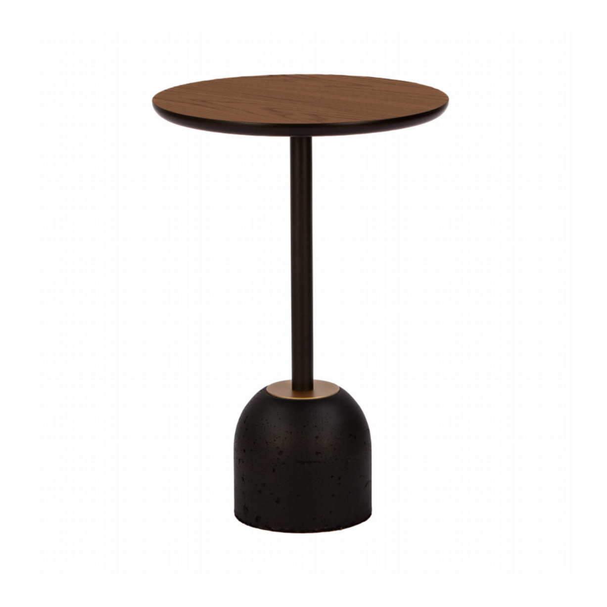 Blat z forniru orzechowego , noga z metalu malowanego proszkowo, podstawa z betonu ze złotym detalem