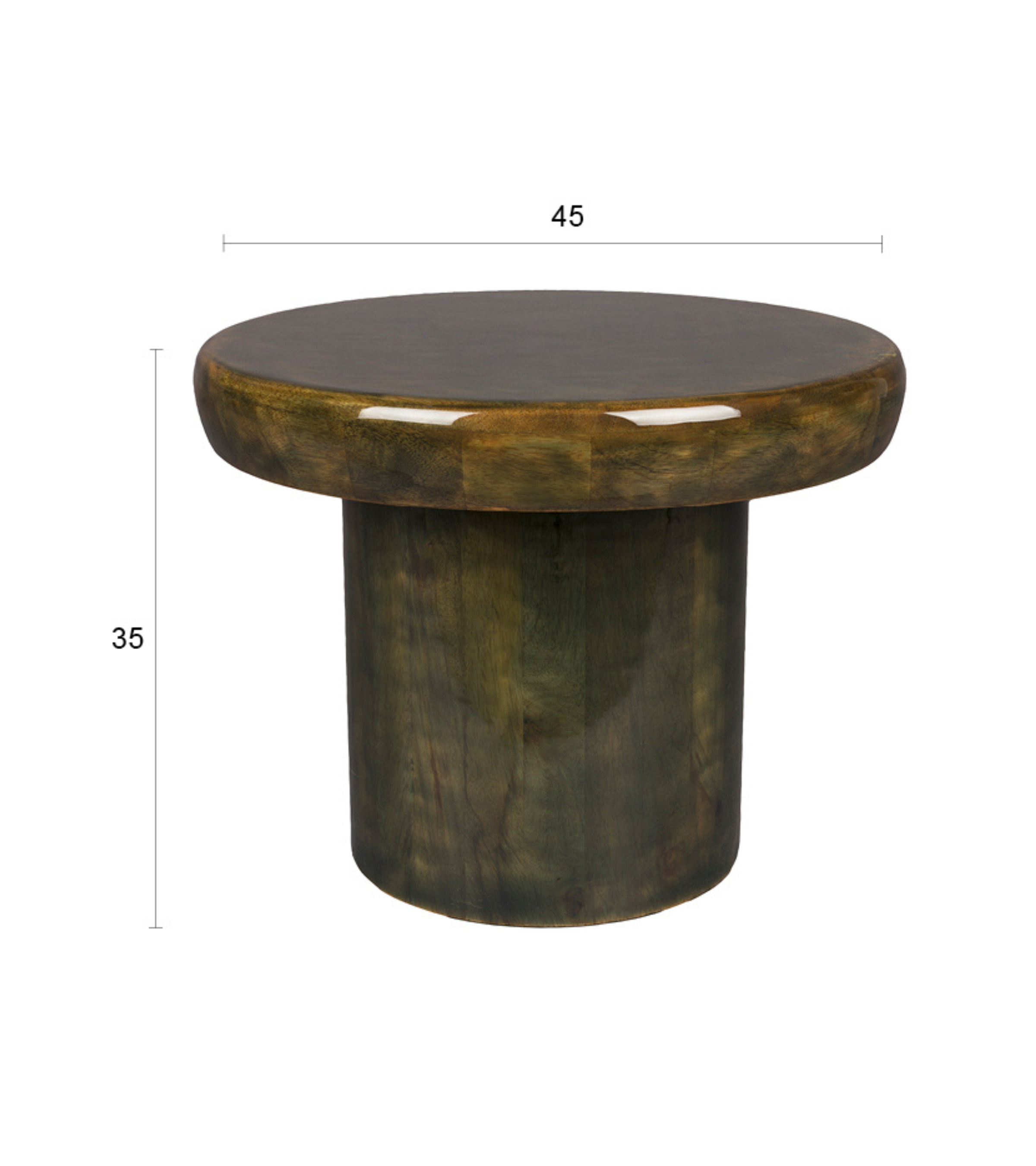 Der Tisch Mush ist eine Rückkehr zum Flair der 70er Jahre, der auf den ersten Blick Wärme und Nostalgie ausstrahlt. Inspiriert von der Form eines Pilzes, zieht er mit seiner geschwungenen Form und dem eleganten Glanz die Blicke auf sich. Hergestellt aus Mango-Holz in einem tiefen, grünen Farbton, schafft er einen natürlichen und gemütlichen Akzent in jedem Raum – von klassischen Arrangements bis hin zu modernen Räumen mit einem Hauch von Retro.