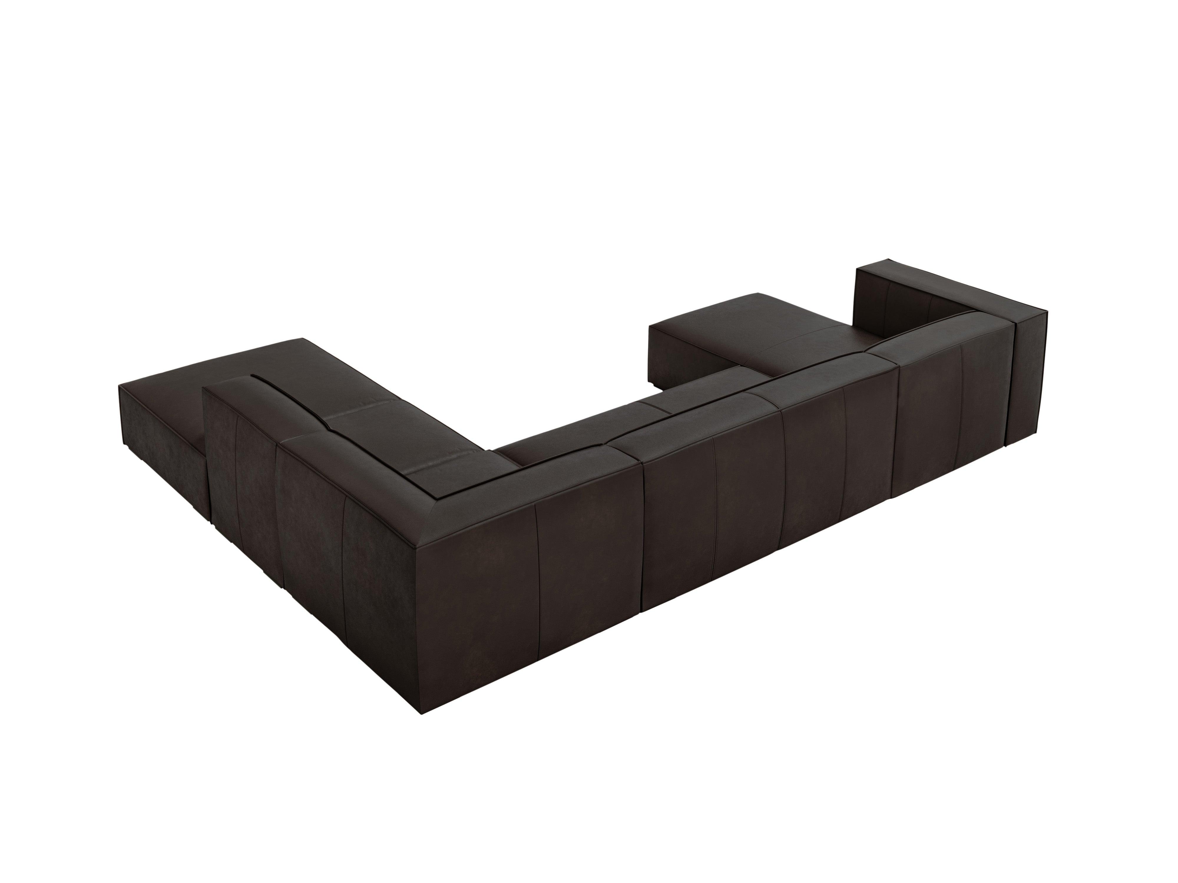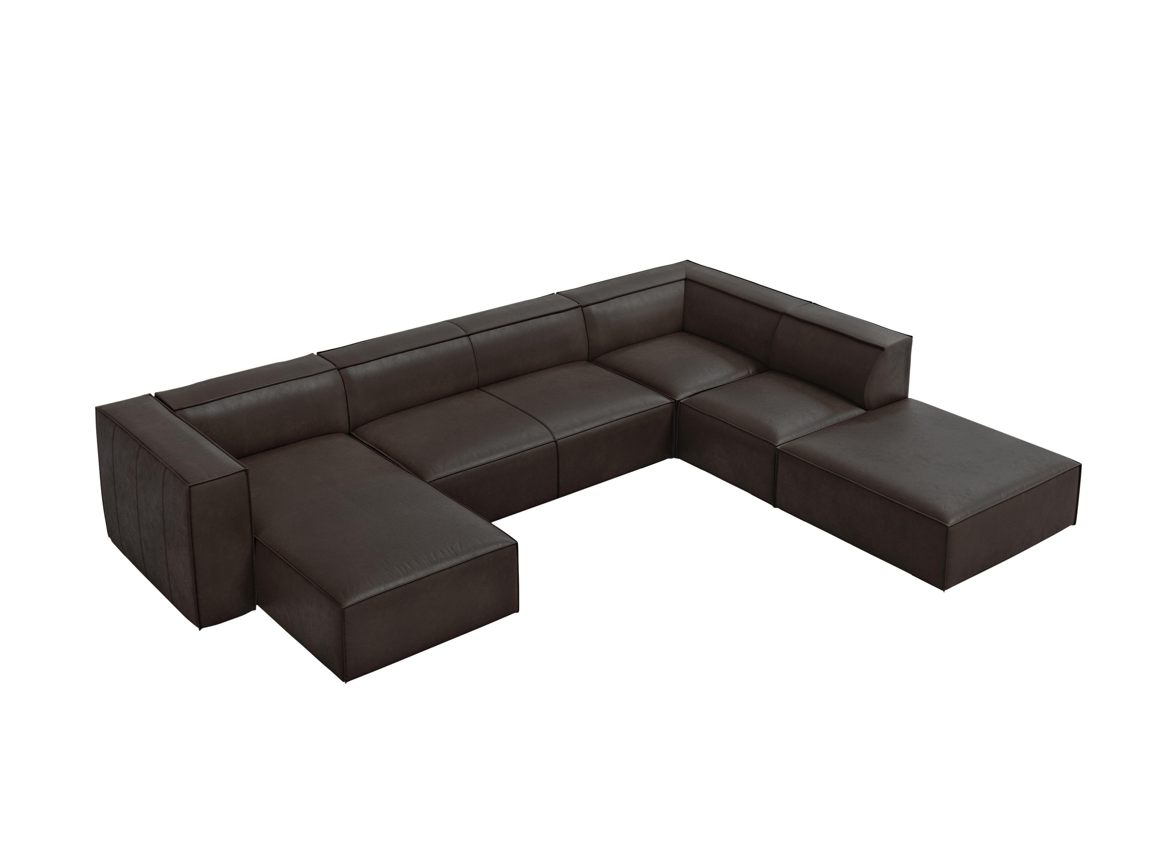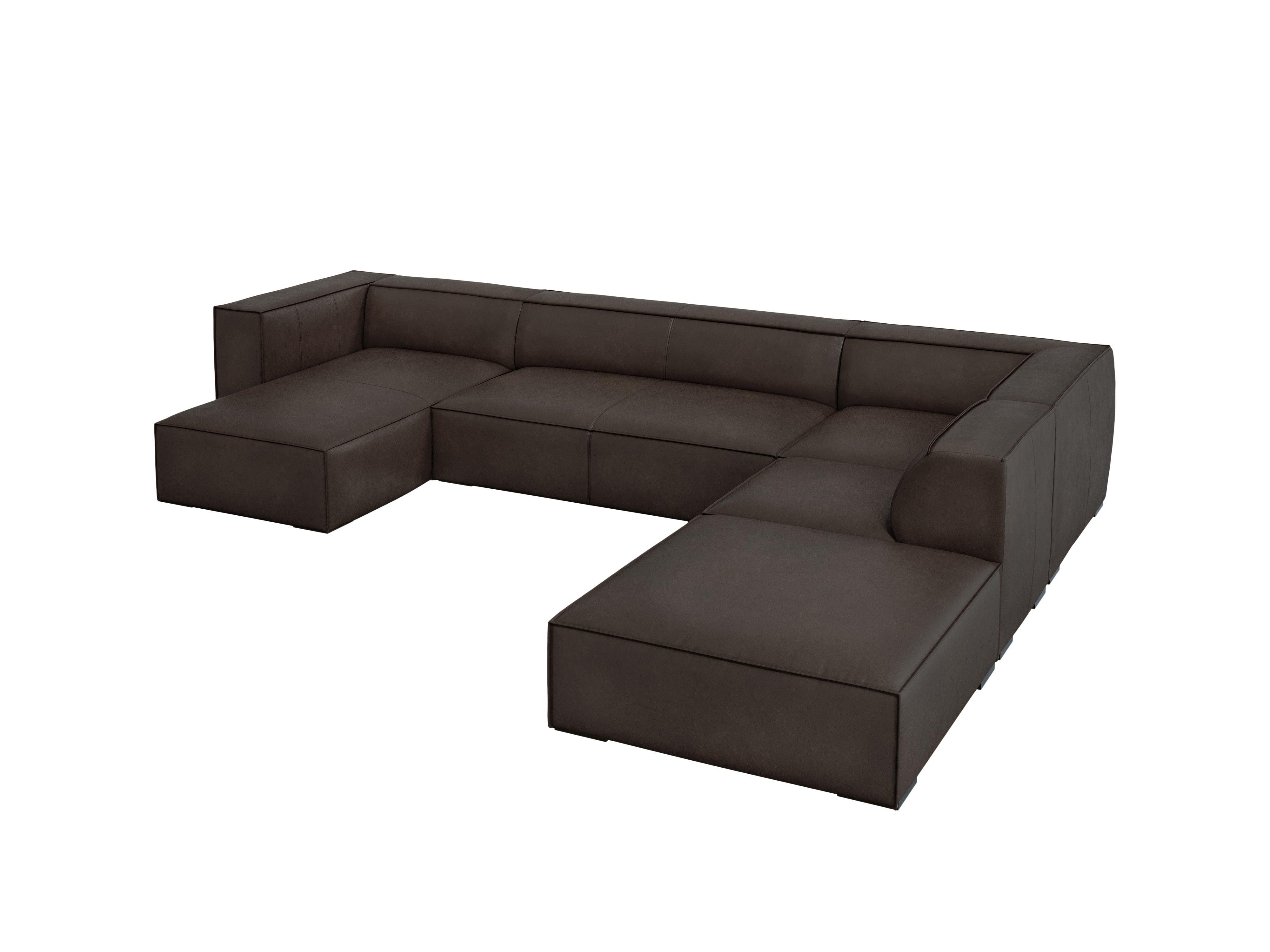 Leder-Ecksofa panoramisch Madame ist die perfekte Verbindung von Eleganz und zeitloser Form. Die geometrische, etwas schlichte Gestalt passt hervorragend in modern klassische Innenräume mit einem Hauch von Modernität. Dekorative Nähte auf dem Lederbezug verleihen dem Gesamtbild einen außergewöhnlichen Charakter. Die Holzfüße aus Buchenholz sehen nicht nur schön aus, sondern bieten auch eine solide Basis.