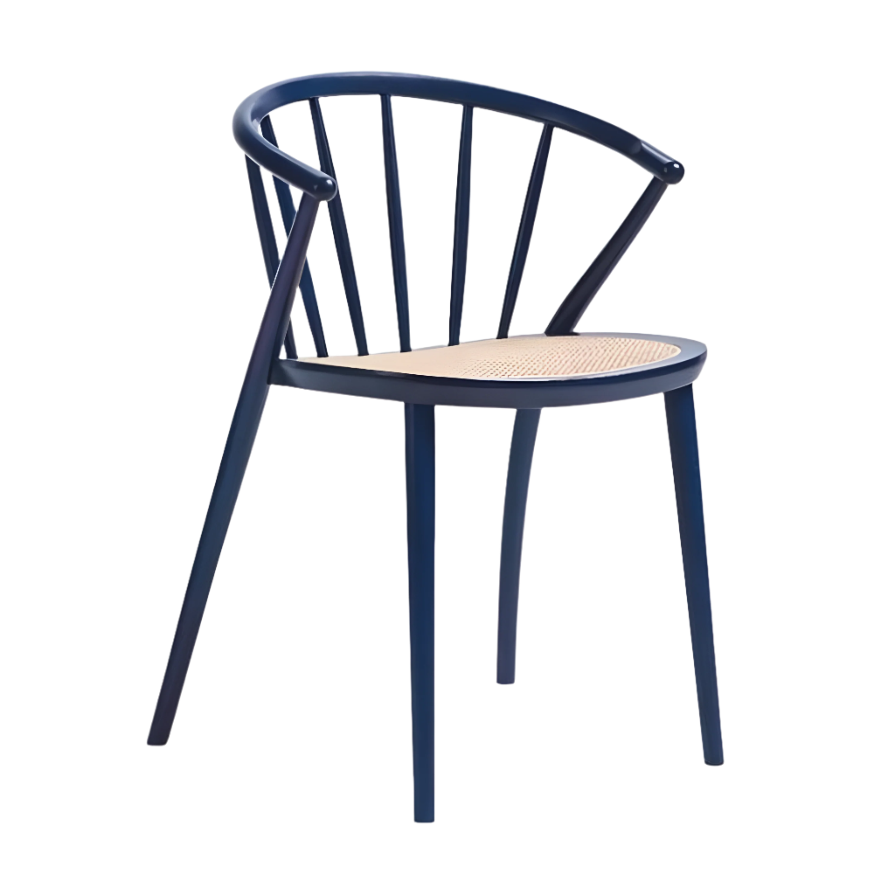 Das Modell Erba zeichnet sich durch eine moderne Sitzfläche aus einer Matte mit senkrechter Webart aus – eine Lösung, die dem Möbel nicht nur Leichtigkeit, sondern auch eine angenehme Textur und natürliche Ästhetik verleiht. Trotz seiner filigranen Form bietet der Stuhl stabilen und bequemen Halt.