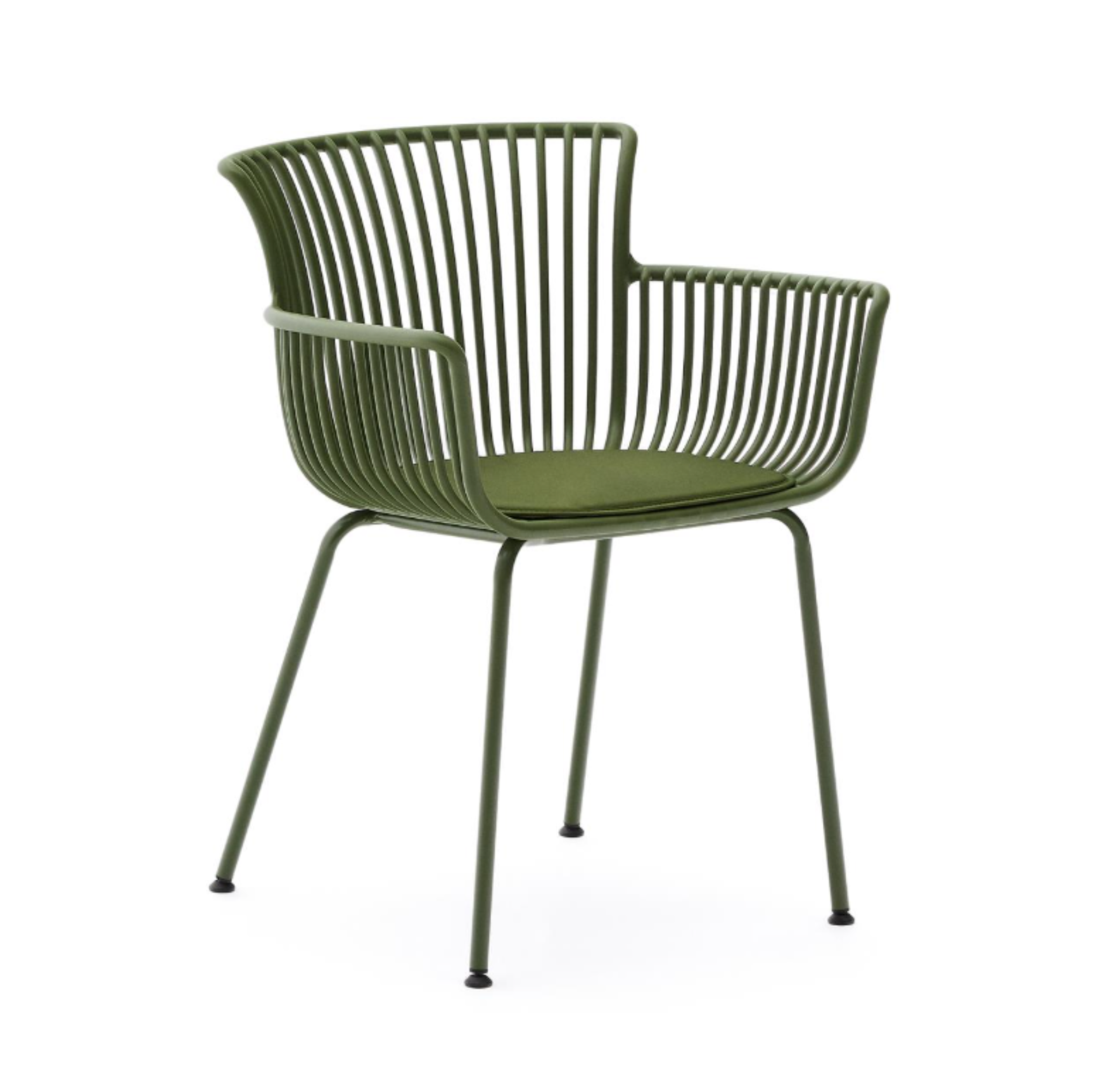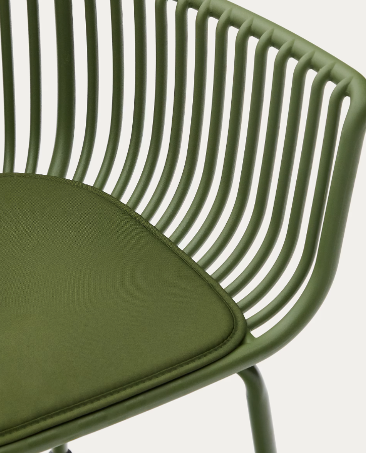 Grüner Stuhl Surpika bestand aus 100% Kunststoff für das Recycling, was sie nicht nur langlebig, sondern auch umweltfreundlich macht. Dank seines einzigartigen Designs ist der Stuhl resistent gegen UV -Strahlung, was ihn im Laufe des Jahres ideal für den Außenbereich macht, ohne Angst vor seinem schnellen Verschleiß.