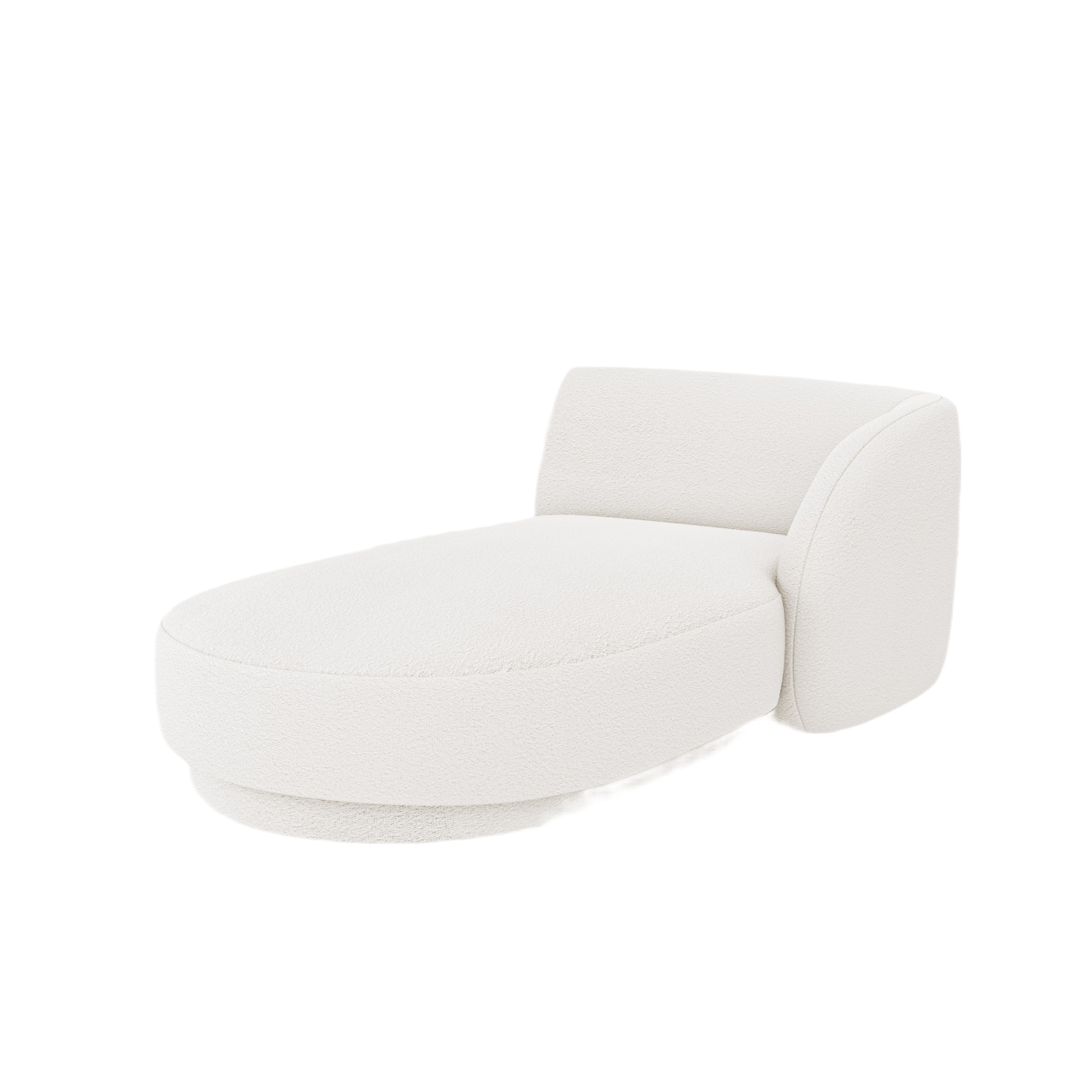 Chaiselongue wurde mit einem Boucle-Stoff (Baloo) mit engem, gedrehtem Gewebe versehen, der einen mehrdimensionalen Eindruck vermittelt. Ein sehr hohes Maß an Abriebfestigkeit garantiert eine langanhaltende Nutzung ohne Gebrauchsspuren. Dank seiner markanten Struktur und eleganten Ausstrahlung wird die Chaiselongue Miley nicht nur zu einem bequemen Ort der Entspannung, sondern auch zu einem beeindruckenden Element moderner Gestaltung.
