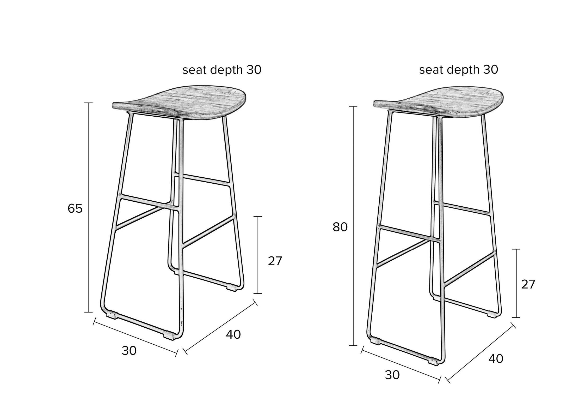 Barhocker Tangle ist ein avantgardistisches Möbelstück, das traditionelle und moderne Materialien auf interessante Weise verbindet. Das Gestell besteht aus vier schlanken Beinen, die in einer Form angeordnet sind, die einem Rechteck mit abgerundeten Ecken ähnelt, verstärkt durch Stangen. Die Vorder- und Rückseite des Gestells sind mit Fußstützen ausgestattet, die die gesamte Konstruktion verbinden. Die Sitzfläche, gefertigt aus lackiertem recyceltem Teakholz, zeichnet sich durch ein einzigartiges Profil aus, mit seitlichen Kanten, die nach oben steigen, was einen interessanten Kontrast zum schlichten Gestell schafft.