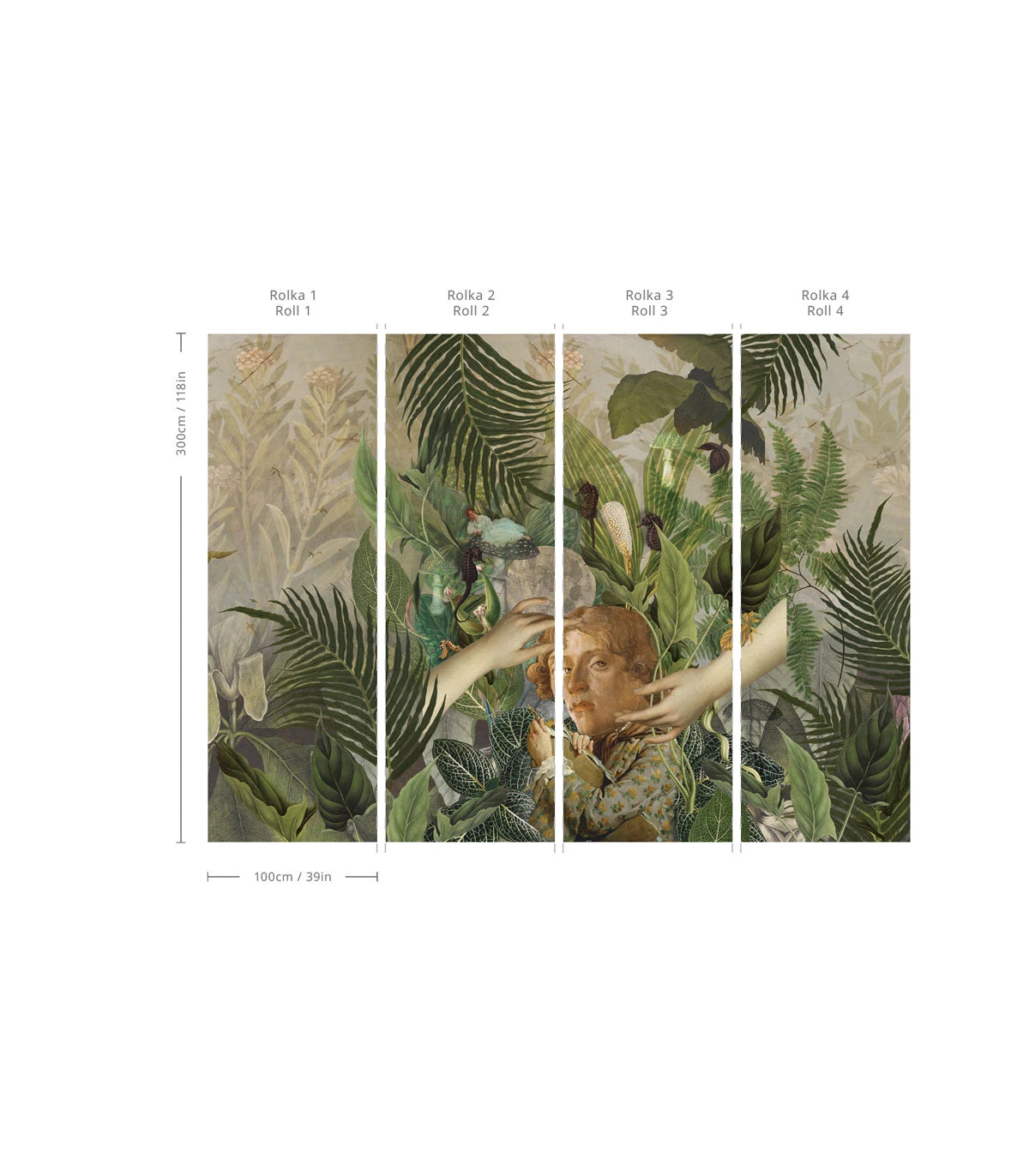 Tapete Green Man wird die Eleganz klassischer und moderner Innenräume perfekt unterstreichen. Sie eignet sich ideal für das Wohnzimmer, das Schlafzimmer oder das Büro und verleiht dem Raum eine Atmosphäre der Ruhe, des Rückzugs und des künstlerischen Charakters. Dank ihr erhält der Raum einen einzigartigen Stil, der von der Natur und subtiler Anmut geprägt ist.