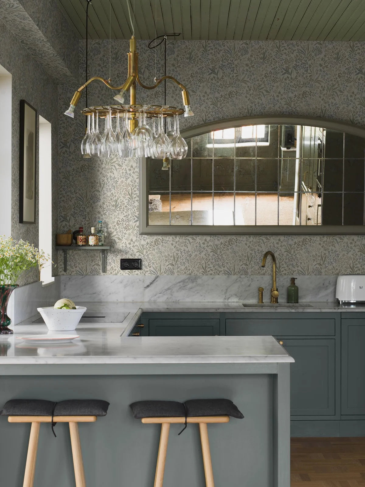 Tapete Nocturne zeichnet sich durch subtile, sanft schimmernde Details aus, die dem Gesamtbild einen luxuriösen Ausdruck verleihen, ohne die elegante Balance zu stören. Sie eignet sich hervorragend für die Küche oder das Esszimmer, wo sie eine Atmosphäre von Wärme, Stil und geschmackvoller Gemütlichkeit schafft und romantische Akzente mit klassischer Form verbindet.