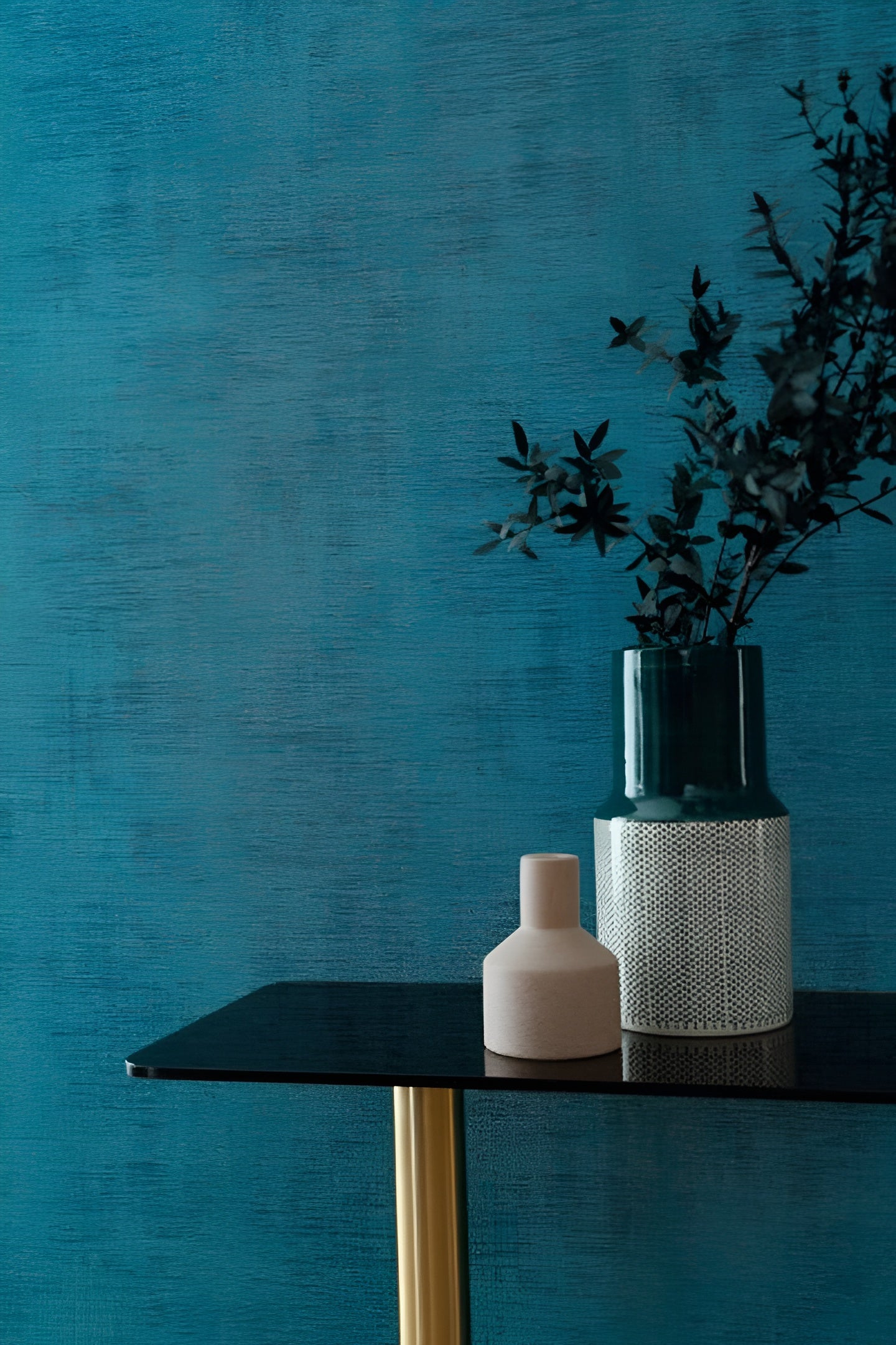 Strukturierte Tapete, die abgewetztes Leinen imitiert JOHARA - BLEU CANARD blau