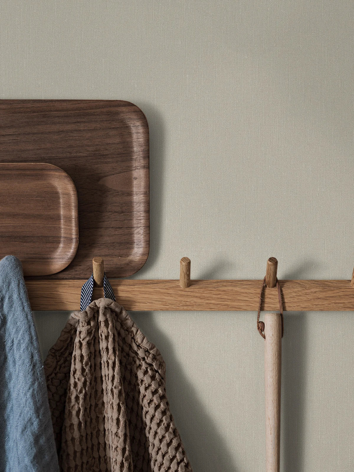 Tapete Scandinavian Beige ist eine moderne Wanddekoration mit subtiler und eleganter Ausstrahlung, die perfekt in minimalistische und zeitgenössische Innenräume passt. Die zarte, textile Oberflächenstruktur verleiht den Wänden spürbare Tiefe und eine angenehme Textur, wodurch die Tapete eine warme und gemütliche Atmosphäre schafft, ohne den Raum zu dominieren.