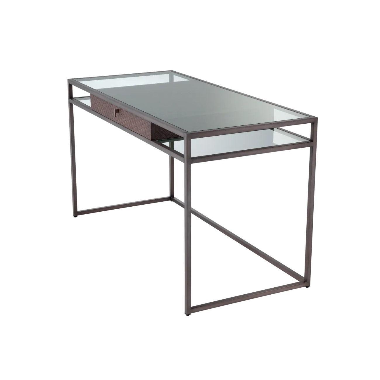 Schreibtisch Napa Valley ist eine einzigartige Kombination aus Designgeschichte mit einem modernen Ansatz. Inspiriert von dem klassischen Bauhaus -Stil, der für seine Einfachheit und Funktionalität bekannt ist, und die Eleganz von Möbeln aus der Mitte des 20. Jahrhunderts wird dieser Schreibtisch zu einem echten Meisterwerk in der Welt der Möbel. Der Edelstahlrahmen erzeugt eine feste Basis, auf der ein transparentes Glasoberteil ruht und die Leichtigkeit und die Moderne der gesamten Struktur verleiht.