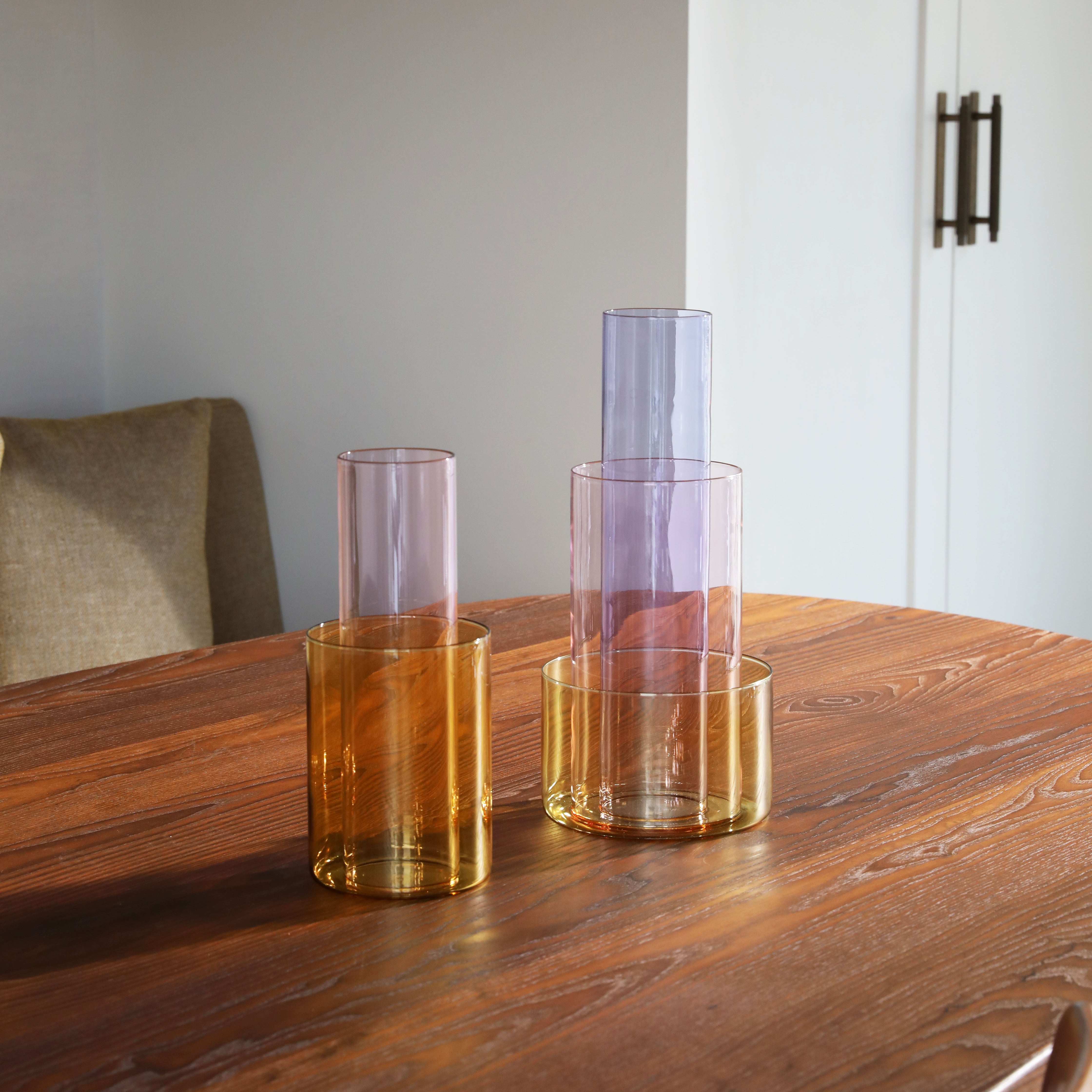 Vase Amphi ist eine hervorragende Möglichkeit, Freude und Kreativität in Ihr Zuhause zu bringen. Ihr flexibles Design ermöglicht es, Blumen beliebig anzuordnen – Sie können mit der Länge der Stiele in verschiedenen Schichten experimentieren und so einzigartige Kompositionen schaffen. Darüber hinaus ermöglicht die regulierbare Wasserhöhe in den einzelnen Teilen der Vase, sie an Ihr Projekt anzupassen. Die transparenten Farben, inspiriert von den Stufen eines Amphitheaters, schaffen lebendige, übereinanderliegende Schichten, die selbst dann einen fröhlichen Akzent setzen, wenn die Vase leer ist.