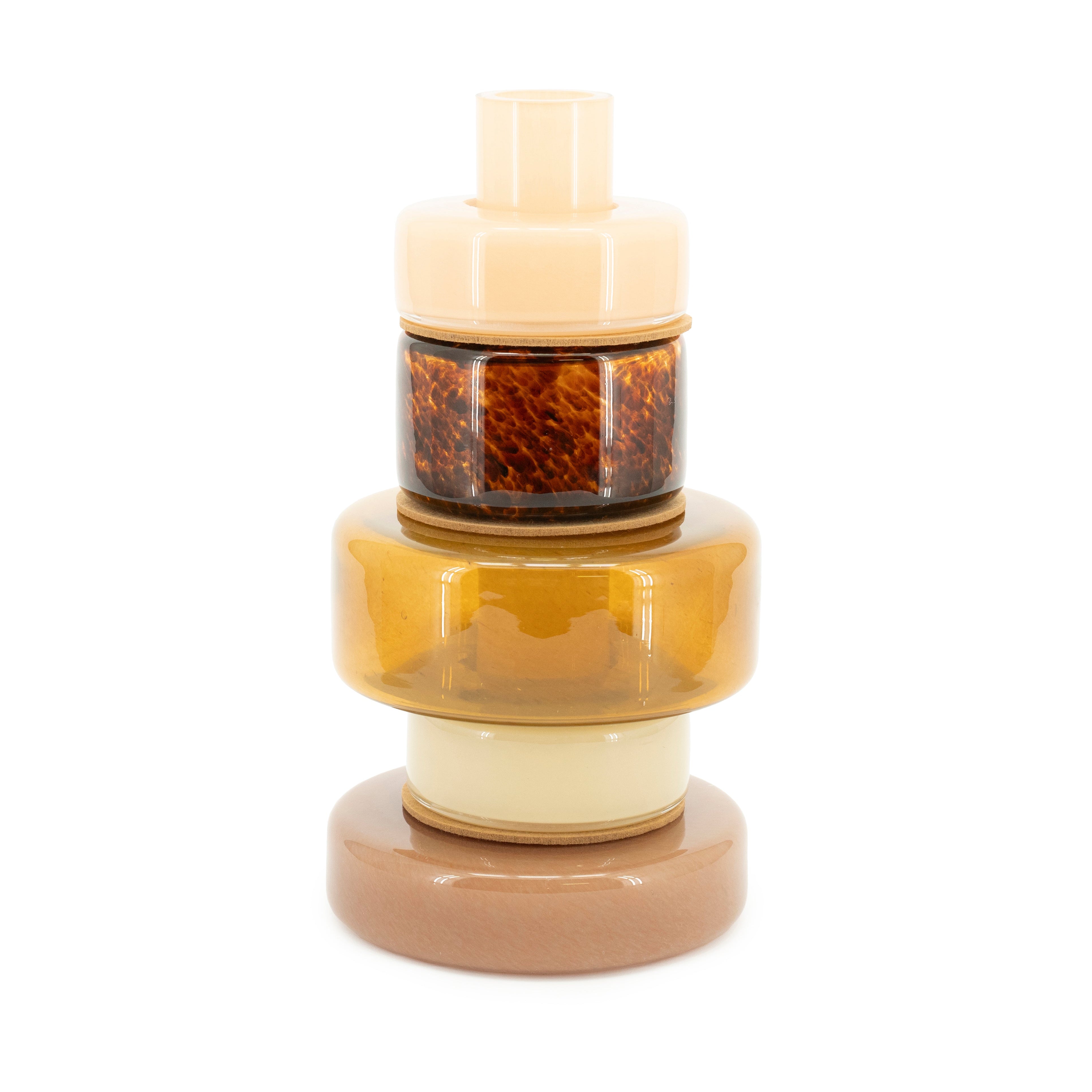 Die Vase Golas ist ein einzigartiges Dekorationselement, das durch ihre originelle, modulare Form und die charaktervolle Farbgebung Aufmerksamkeit erregt. Ihre schichtweise Konstruktion erinnert an eine Skulptur – jeder Teil hat eine andere Textur, Tonalität und Transparenz, wodurch die Vase wie ein künstlerisches Objekt aussieht und nicht nur als Gefäß für Blumen dient. Sie ist der ideale Akzent für mutige, kreative und moderne Innenräume – sie ergänzt hervorragend Wohnzimmer, Büros sowie eklektische, Boho- und modern-retro Räume.