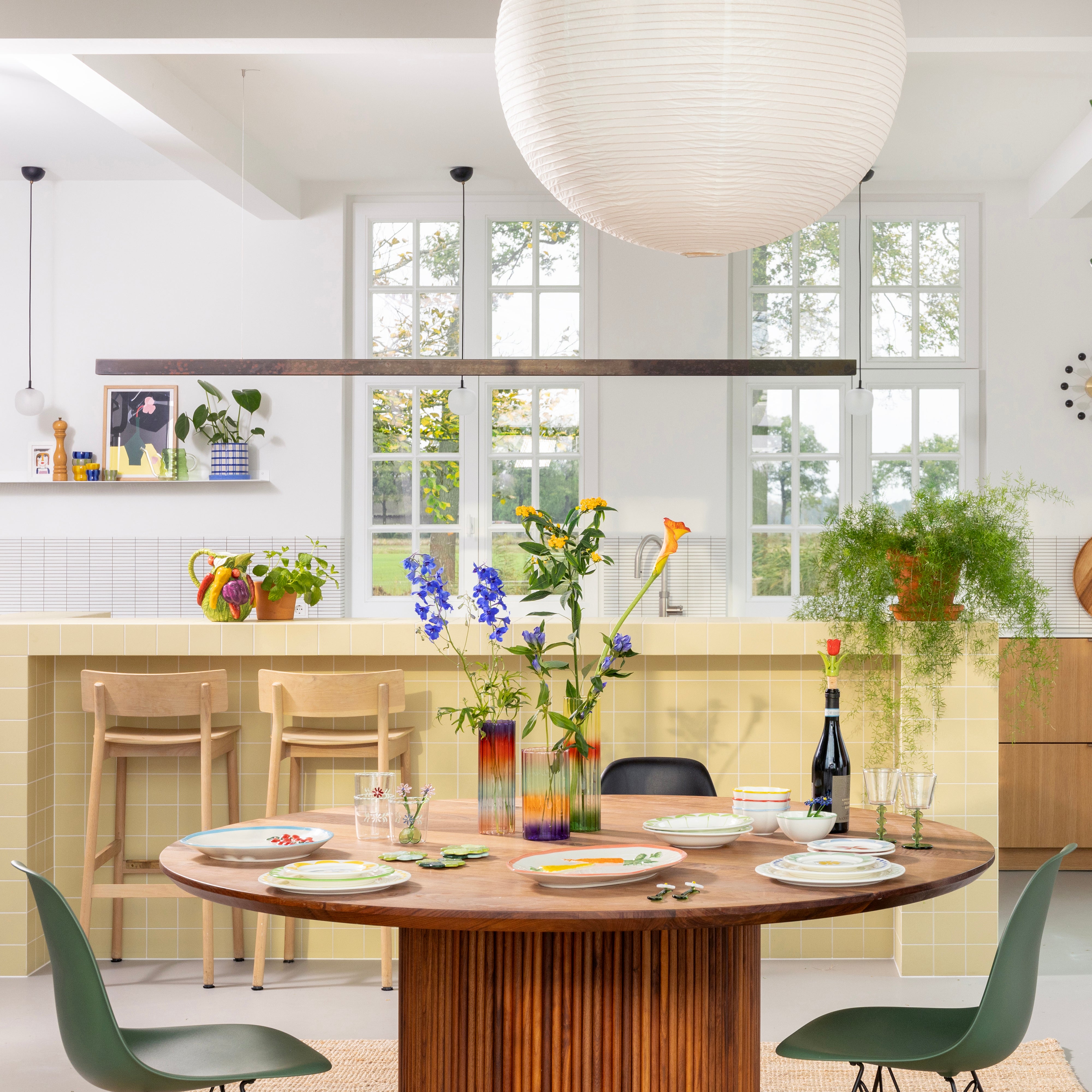 Vase Gradient Evening ist eine ideale Möglichkeit, um eine fröhliche und unkonventionelle Tisch- oder Kommodenarrangement zu schaffen. Diese dekorative Vase begeistert mit einem fließenden Farbverlauf, der dem Raum Leichtigkeit und modernen Charakter verleiht. Dank der schlanken Form stellt die Vase die Blumen perfekt zur Schau und wird zu einem eindrucksvollen dekorativen Akzent im Esszimmer, Wohnzimmer oder Schlafzimmer.