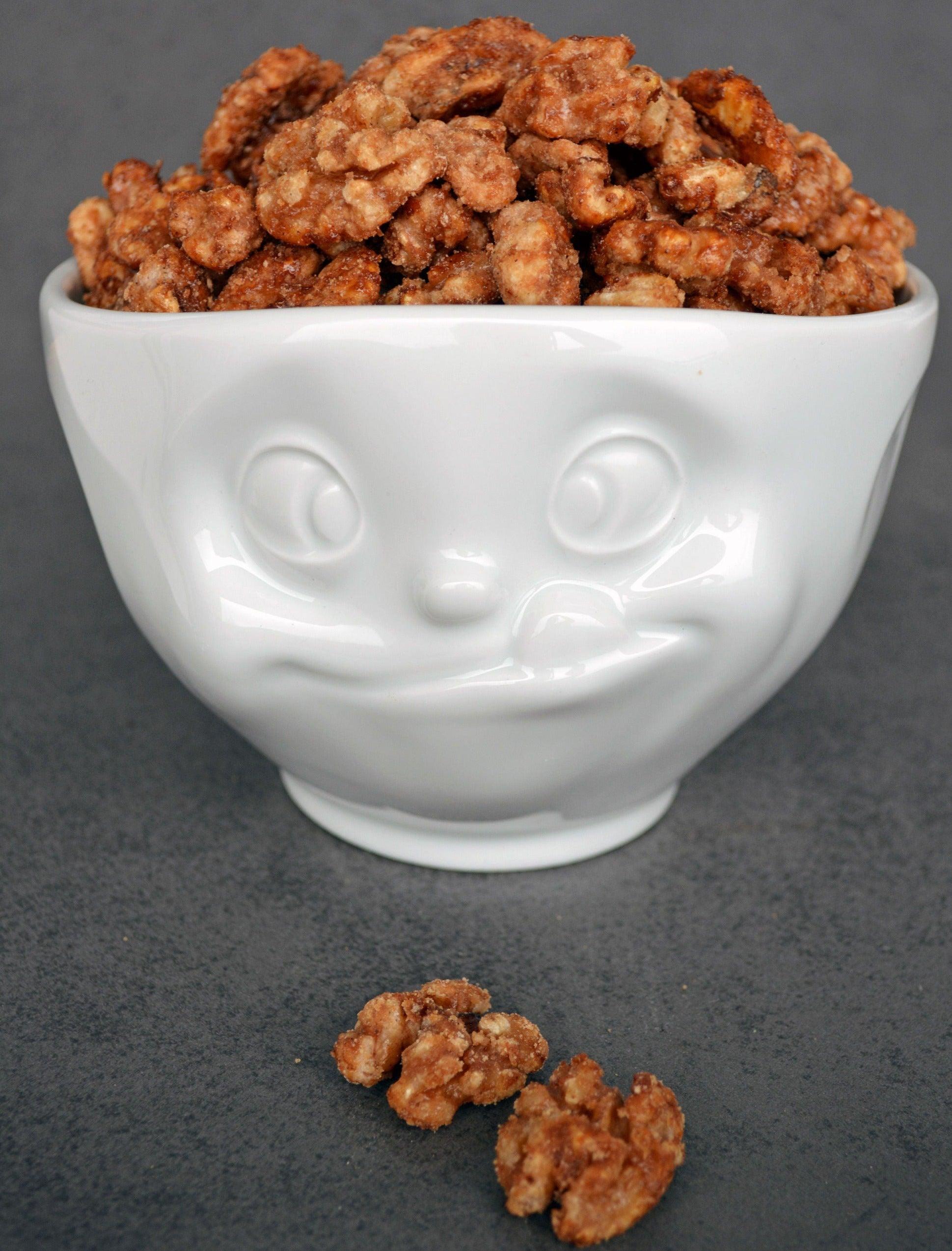 Miska Tasty in Weiß mit dem charmanten Gesicht des Giersigers ist nicht nur ein praktisches Gefäß, sondern auch ein ausdrucksstarkes Dekorationselement, das Freude auf Ihren Tisch bringt.
