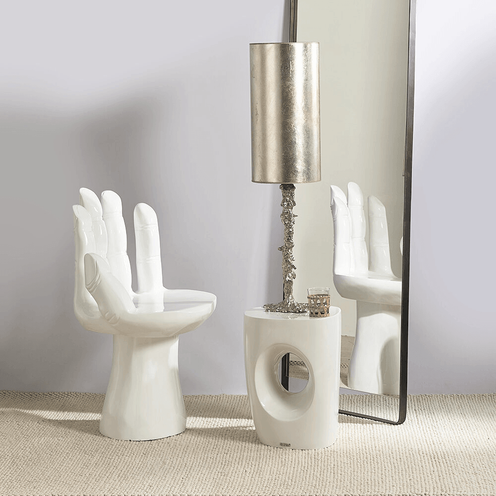 Stuhl Hand in Weiß ist ein exzentrisches Design, das mit seinem Aussehen und seiner unkonventionellen Form begeistert. Dieses Modell ist nicht nur ein komfortabler Sitz, sondern auch eine außergewöhnliche Dekoration, die fast jedem Raum Charakter und interessantes Design verleiht.