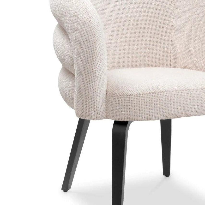 Esszimmerstuhl Romanle ist die Quintessenz von Eleganz und Komfort. Der einzigartige Farbton von Lyssa Off-White verleiht ihm einen einzigartigen Charakter, und die subtil dekorierte Rückseite des Sitzes mit drei Plüschwalzen fügt Noten von Luxus und Raffinesse hinzu. Dieser Stuhl ist ein großes Angebot für diejenigen, die zeitloses Design und Funktionalität schätzen.