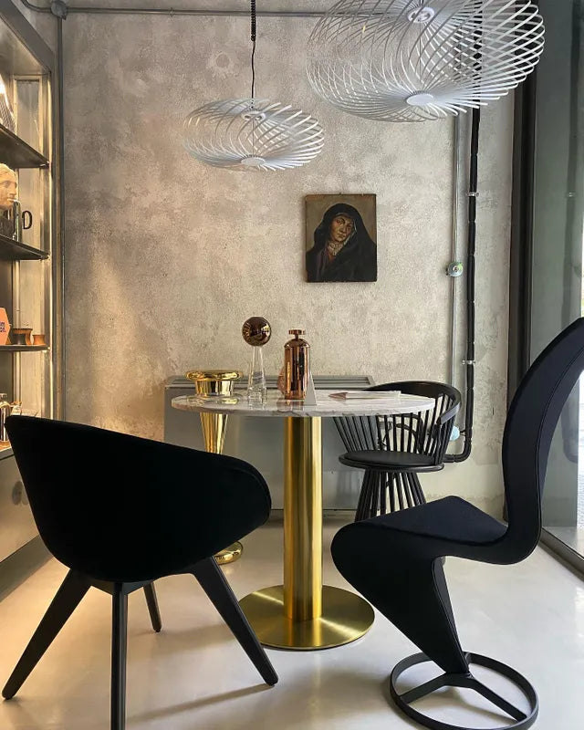 Die Tischplatte des Tisches besteht aus farbigem Marmor, der in den Provinzen Shandong und Fujian in China abgebaut wird. Das einzigartige Muster des Marmors entstand durch Millionen von Jahren der Bewegungen der Erdkruste und der Prozesse des Lavaausstoßes, was den Tisch zu einem unverwechselbaren Element in jedem Raum macht.