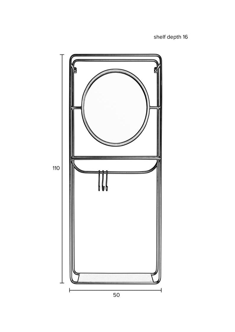 Moderner Wandgarderobe mit Spiegel Duco ist eine praktische Lösung, die Funktionalität mit minimalistischem Design verbindet. Die schwarze Stahlkonstruktion fügt sich hervorragend in verschiedene Einrichtungsstile ein und verleiht ihnen Eleganz und Charakter. Dank des integrierten Spiegels und der Haken in einem Produkt erhalten Sie einen bequemen Platz für Ihre täglichen Accessoires sowie die Möglichkeit, Ihr Aussehen vor dem Verlassen des Hauses schnell zu überprüfen.