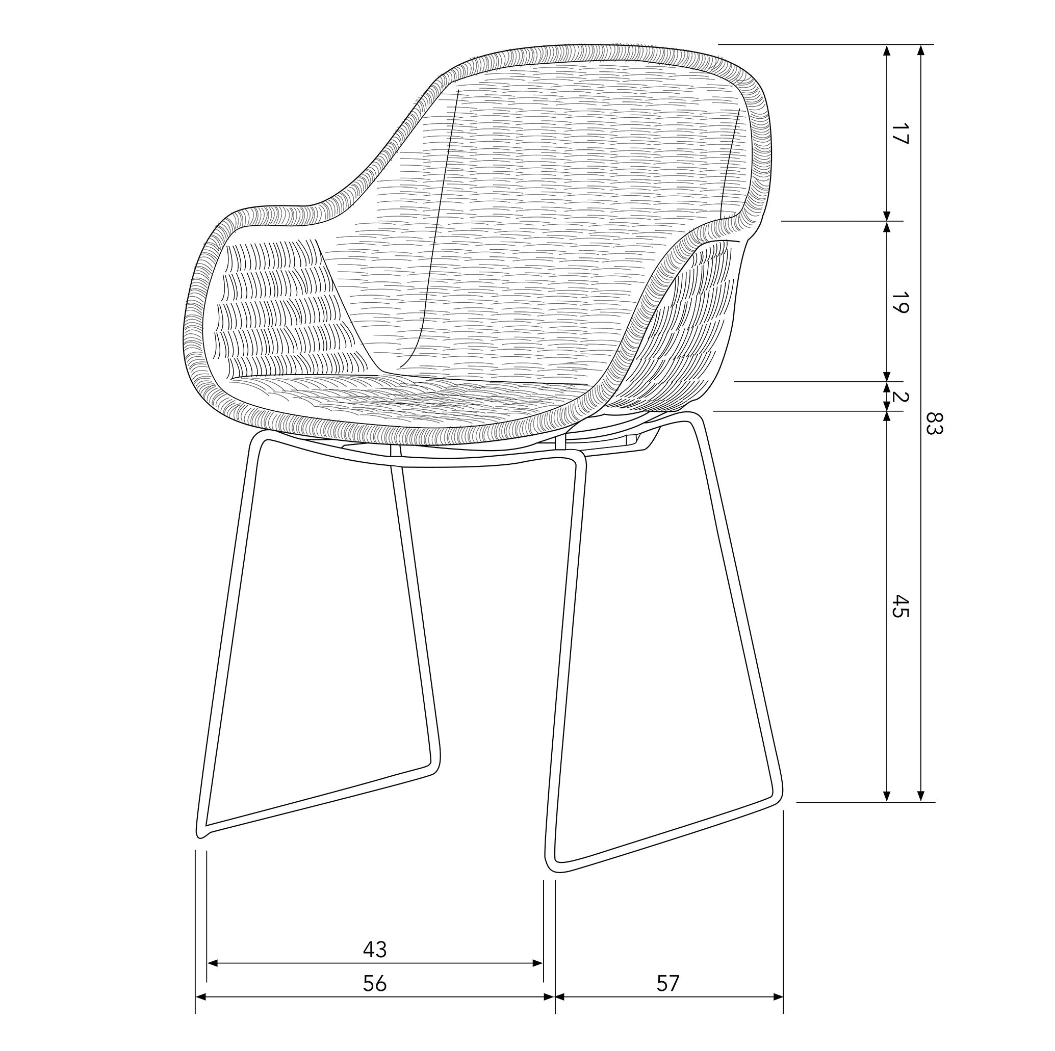 Die Höhe der Armlehnen aus dem Sitz gemessen: 19 cm