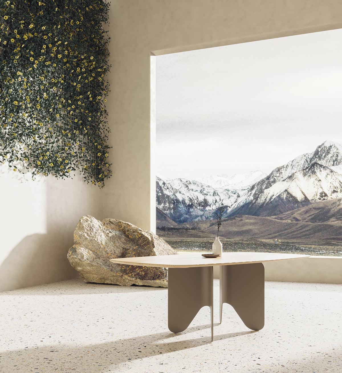 Tisch Roots ist eine perfekte Kombination aus organischen Formen und natürlichen Bewegungen, die für mutige Menschen geschaffen wurden, die den minimalistischen Stil schätzen. Nelson de Araújo ließ sich bei der Gestaltung des Wurzeltisches von gekrümmten Formen der Natur inspirieren - Ozeanwellen, Wolken am Himmel, fließende Flüsse und frei wachsende Wurzeln von Bäumen. Ihr Ziel war es, Elemente der Natur von außen in Heiminnenräume einzuführen und eine harmonische und stilvolle Umgebung zu schaffen.