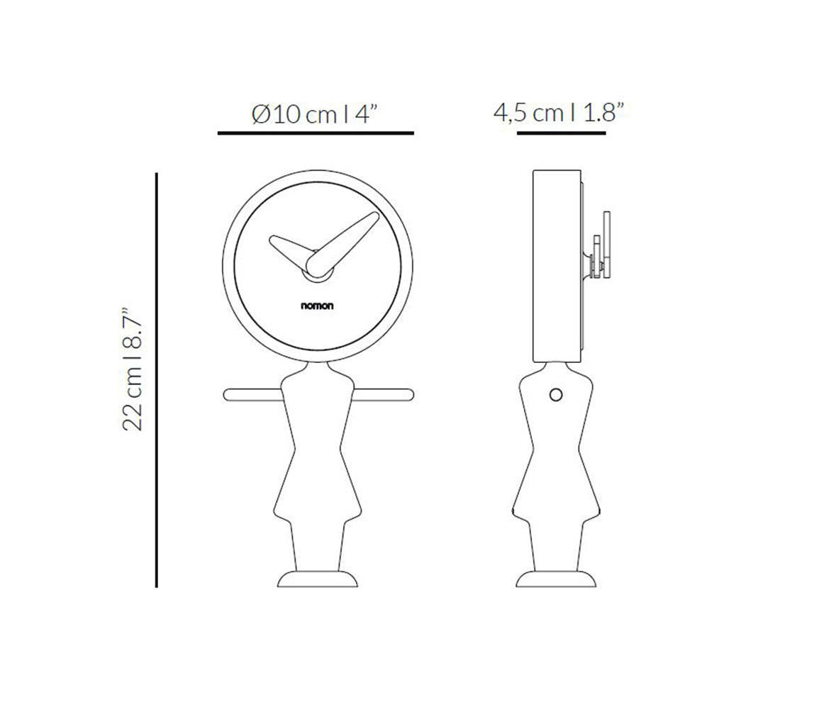 Der Tischwecker Nena ist eine designorientierte Dekoration, die die Funktion der Zeitmessung mit einer skulpturalen Form verbindet. Diese einzigartige Uhr zeichnet sich durch eine Silhouette aus, die von den symbolischen Figuren der Marke inspiriert ist, sowie durch die sorgfältige Kombination von massivem Nussbaum- oder Eschenholz in Eichenoptik mit eleganten metallischen Details. Dank der durchdachten Form präsentiert sich die moderne Tischuhr hervorragend auf einer Kommode, Konsole oder einem Couchtisch und bringt Wärme und raffinierten Stil in den Raum.