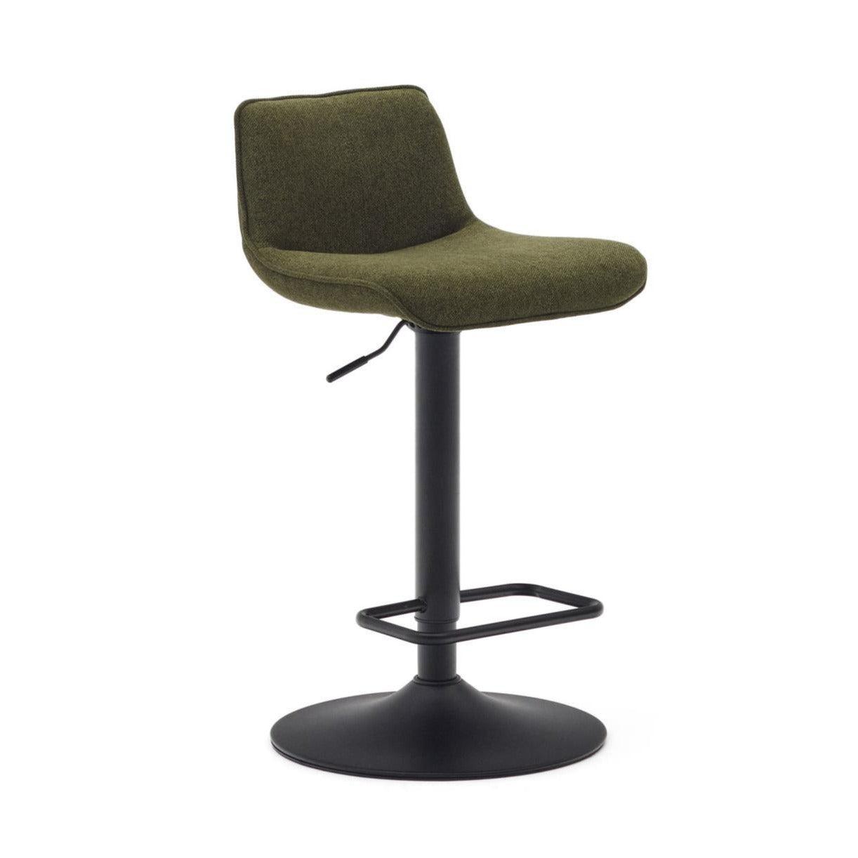 Barhocker Zenda ist die perfekte Kombination aus Funktionalität und Ästhetik und spiegelt einen designorientierten Ansatz für Komfort wider. Sein dunkelgrüner Chenille-Sitz und der Rohrrahmen kreieren ein unverwechselbares Design, das jede Umgebung mit Eleganz und Modernität bereichert.