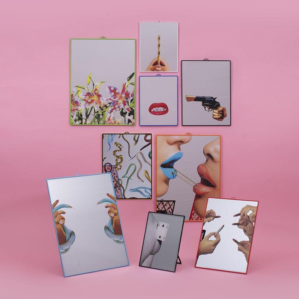 Einzigartiger Spiegel In einem farbenfrohen Rahmen ist es Teil einer einzigartigen Kollektion, die vom italienischen König von Avant -Gärte Seletti und dem Toileletpaper -Magazin erstellt wurde. Interessante, leicht kontroverse Collage, Wie ein Tor zu einer anderen surrealen Dimension verleiht es dem Innenraum einen einzigartigen Charakter.