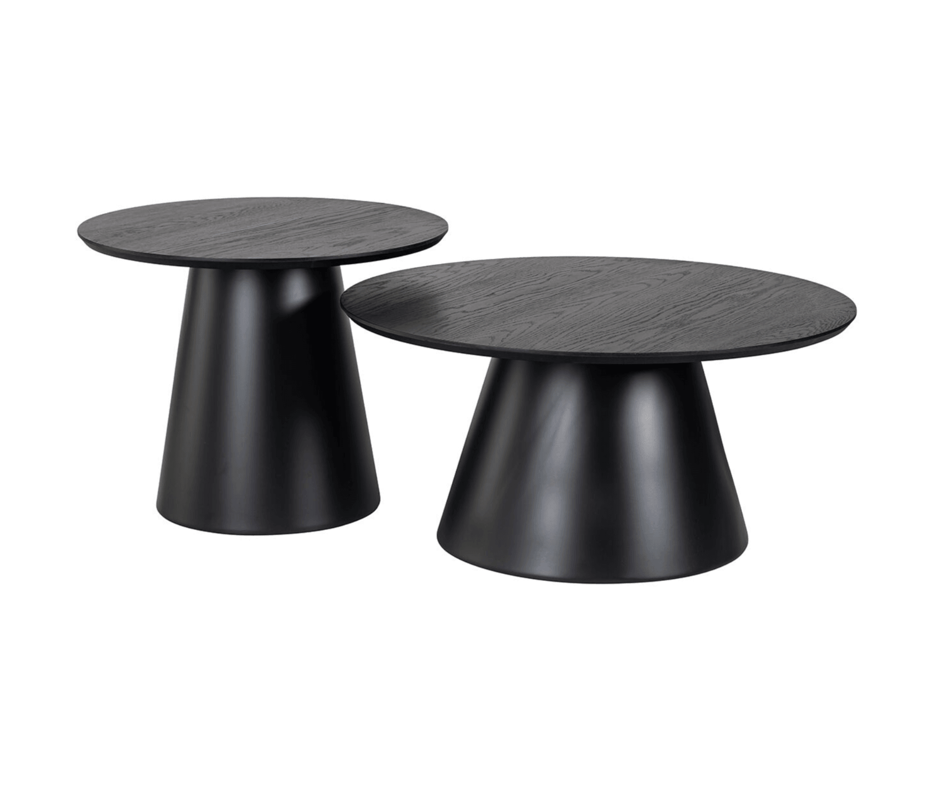 A set of two coffee tables Jazz is a combination of style and minimalism, which will undoubtedly decorate your home and bring a note of modernity to space. They are characterized by a designer, conical base made of metal and a round top of MDF, which was finished in shiny black. This set of tables not only has a practical function, but is also an attractive decorative element.