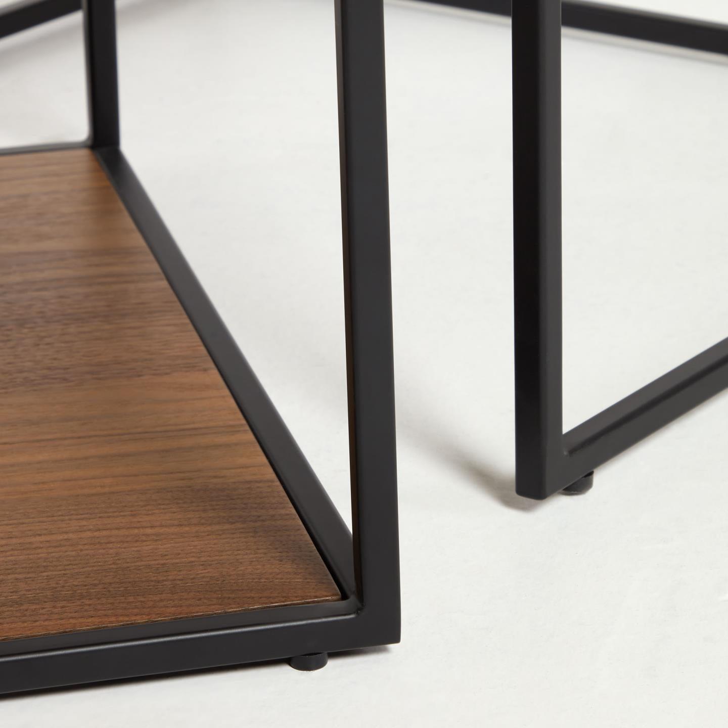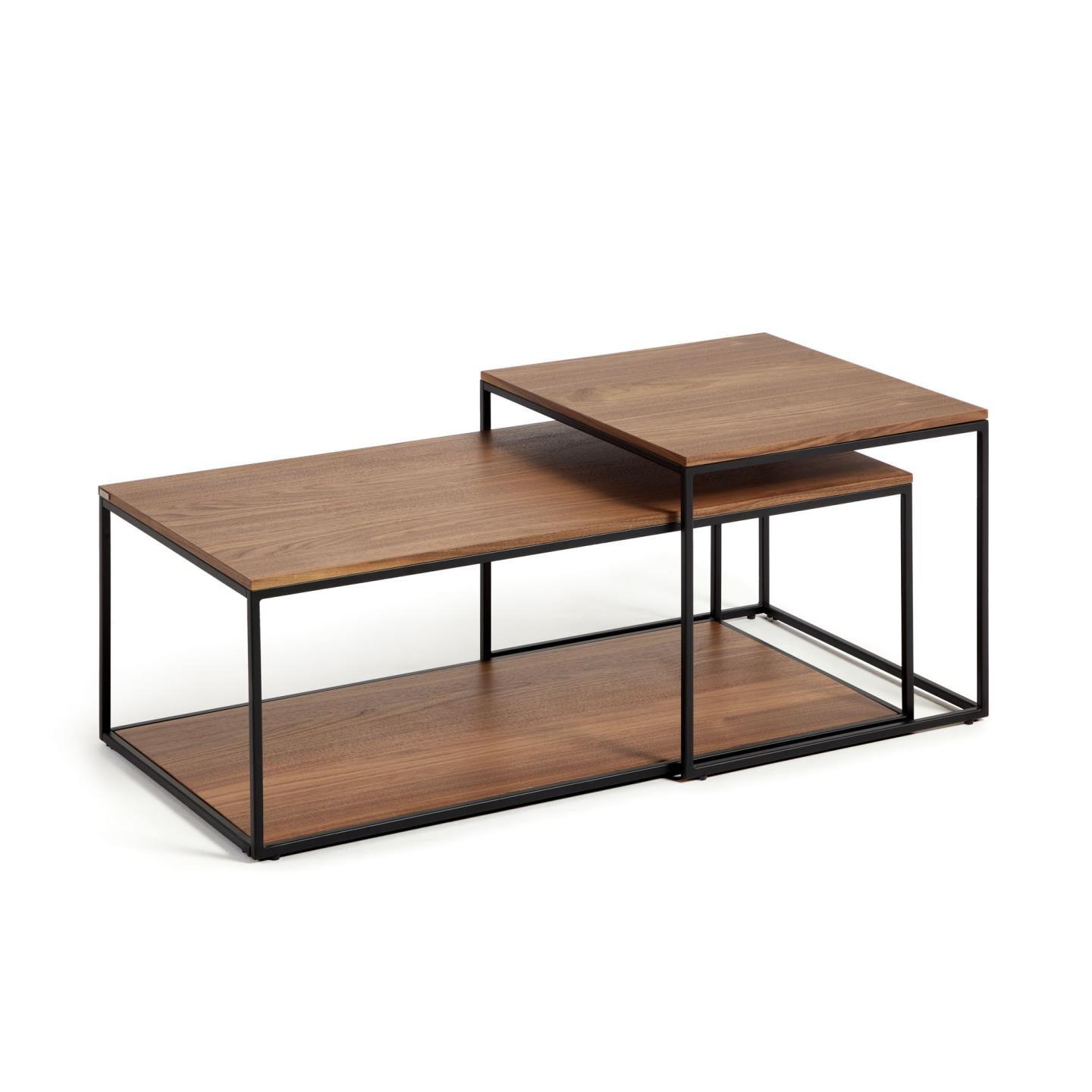 A set of Yoana Walnum Veneer coffee tables with a black frame