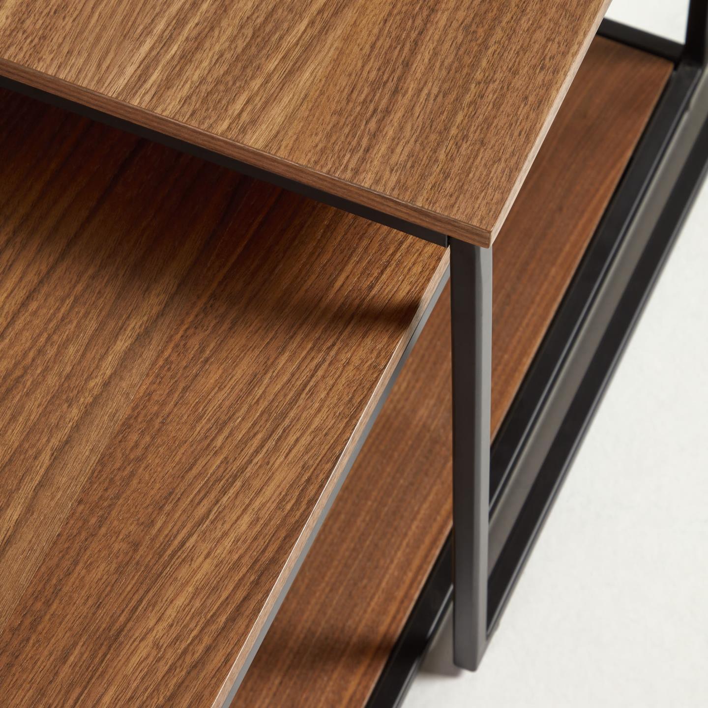 Nut veneer gives each table a warm character, emphasizing the natural beauty of wood. The metal frame in an elegant black color creates a contrast, adding a set of modernity and industrial charm. The Yoana collection is not only aesthetics, but also practicality in one - these tables are irreplaceable companions in everyday life.