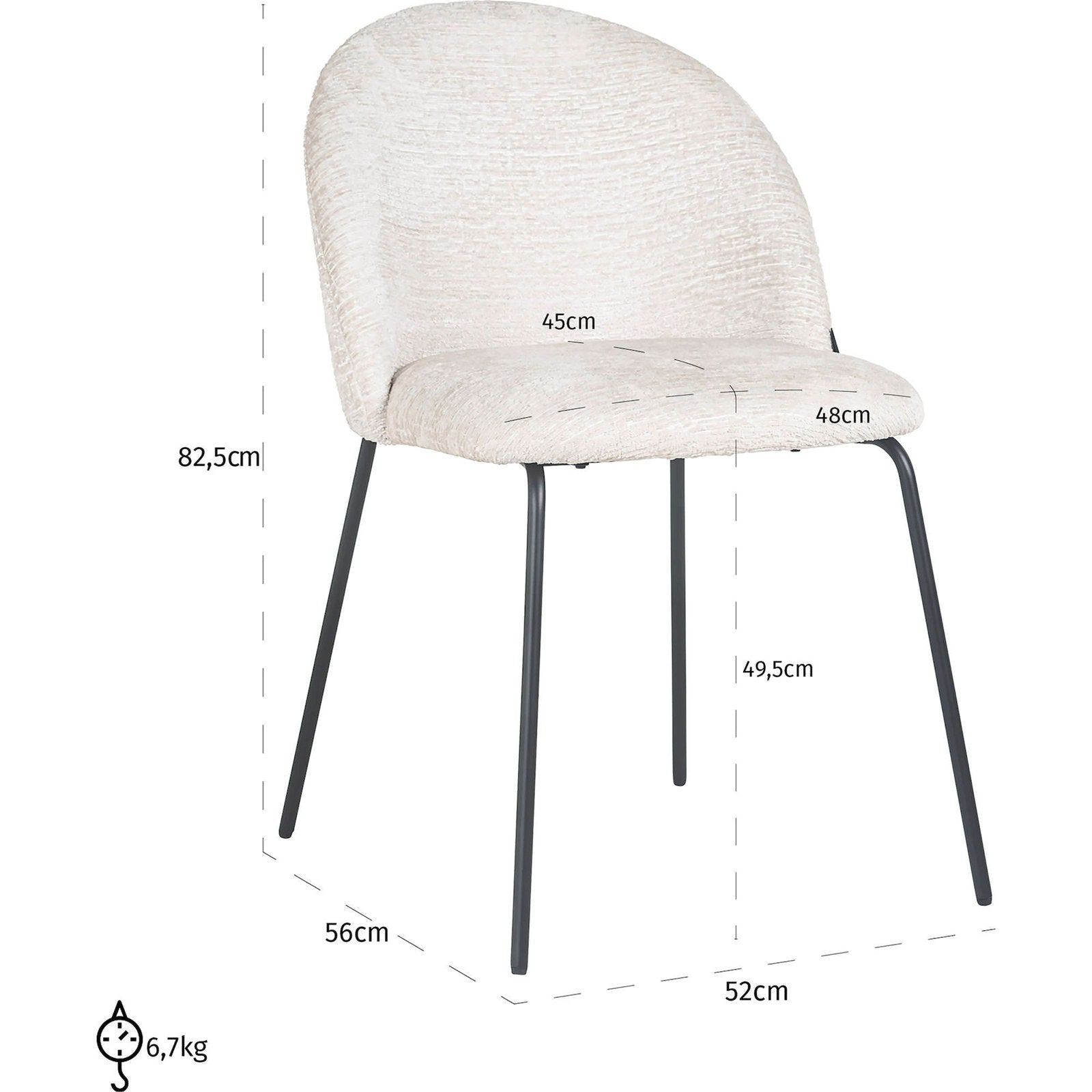 Czarna podstawa, wykonana z wytrzymałego metalu, to stabilna i solidna konstrukcja, która wspaniale komponuje się z białym siedziskiem. To minimalistyczne wykończenie wprowadza do krzesła element nowoczesności, tworząc piękny kontrast z jasnym kolorem tapicerki.