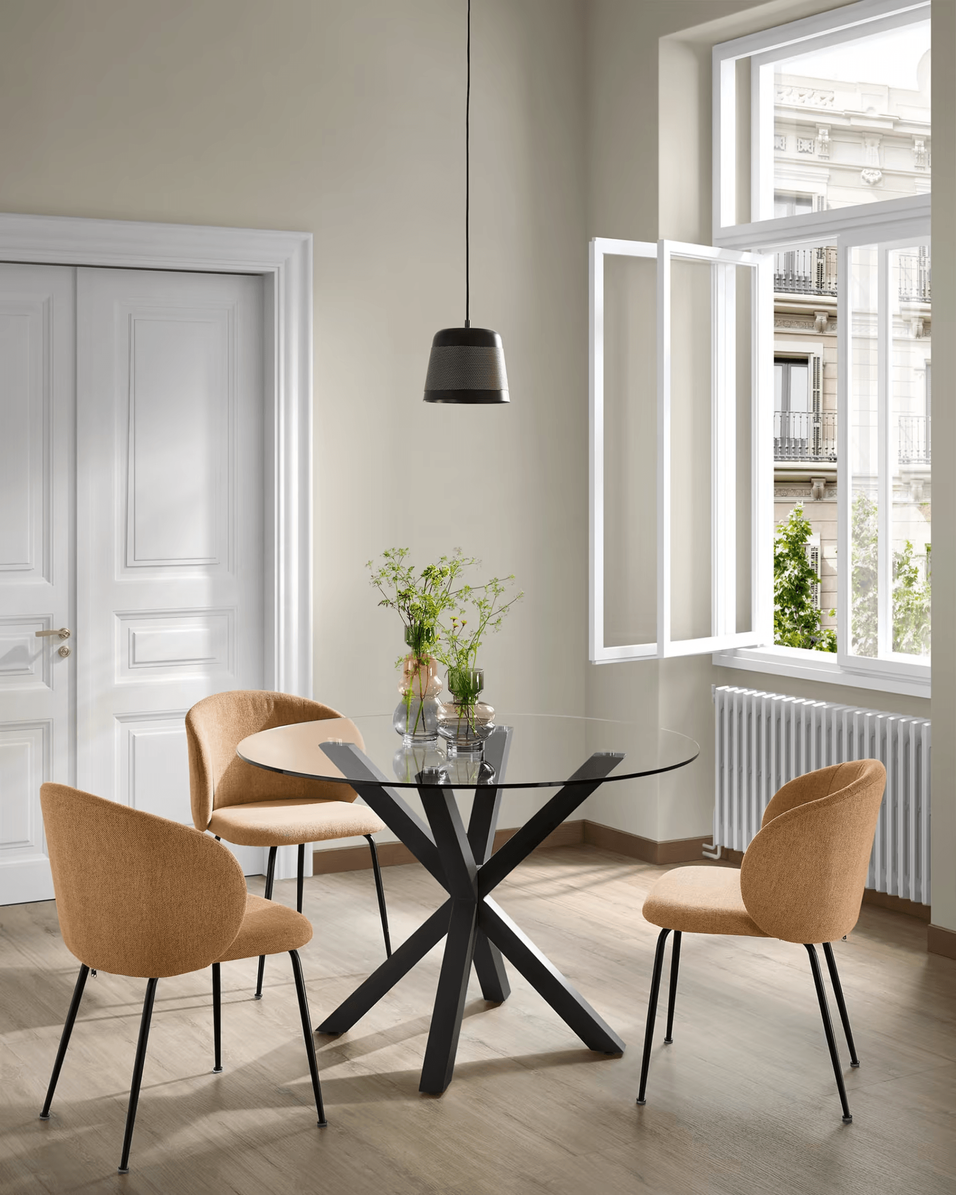 Stół okrągły ARGO szklany z czarną podstawą La Forma    Eye on Design