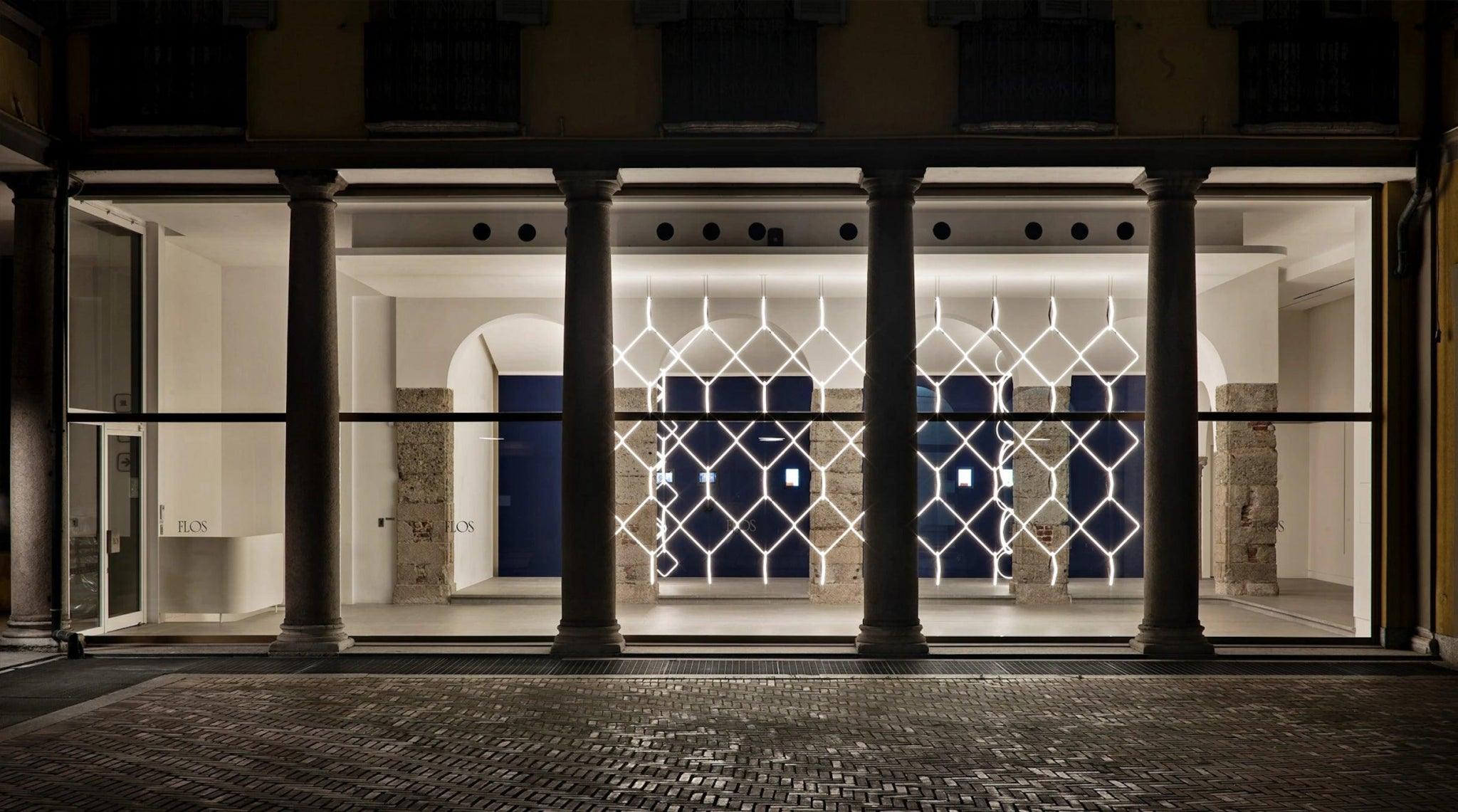 Drawing inspiration from minimalist art, the lamp hanging Arrangements seamlessly combines light and sculpture, creating a striking graphic lighting design. The aluminum body, powder-coated in black and mounted on a cable, evokes a distinctly stylish atmosphere. Moving away from the rawness typically associated with neon lights, these innovative lamps emit a warmer, more inviting glow, creating a cozy and comfortable ambiance. Each element can be connected to a power supply using an electrical and mechanical connection system designed for customizing the product configuration.