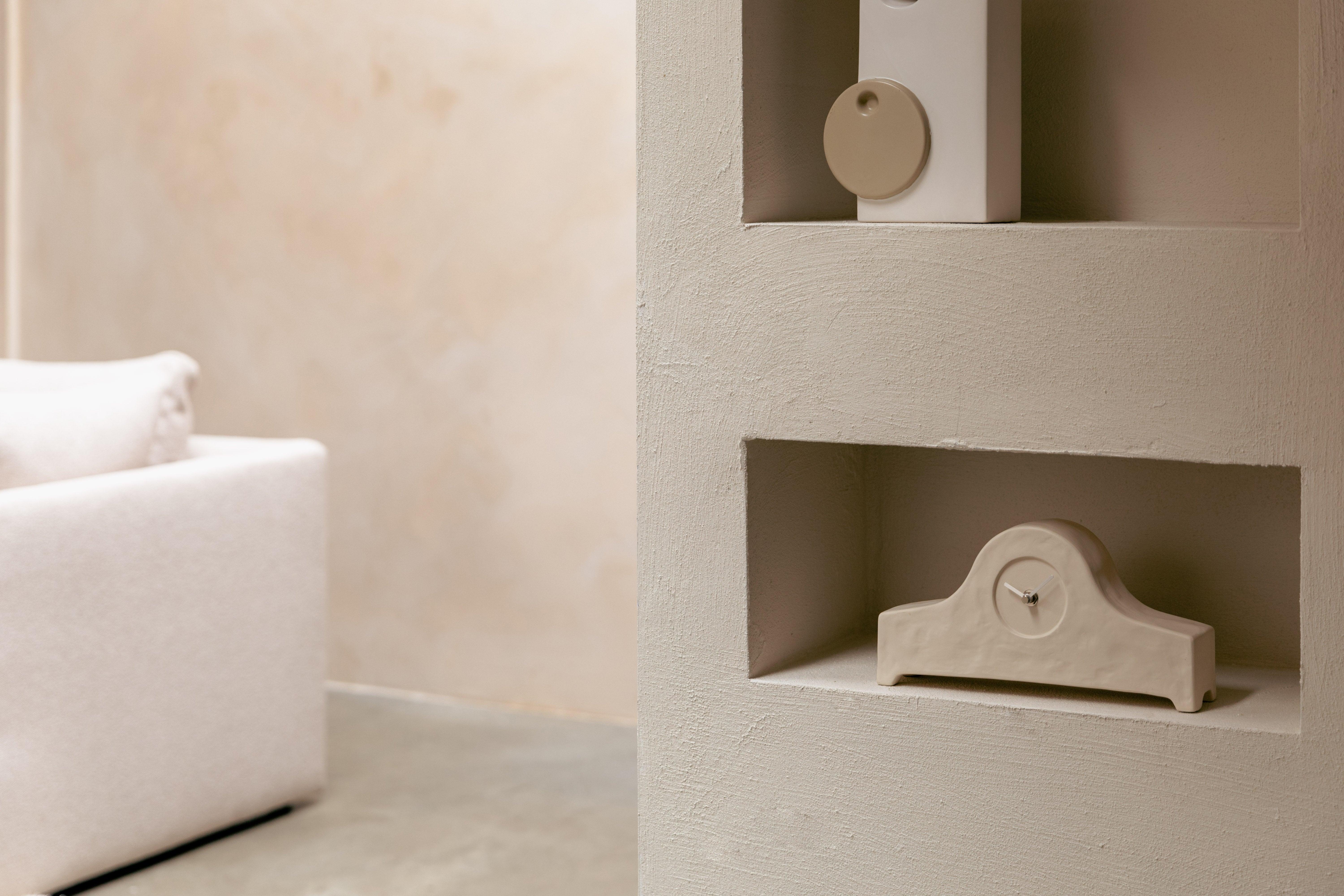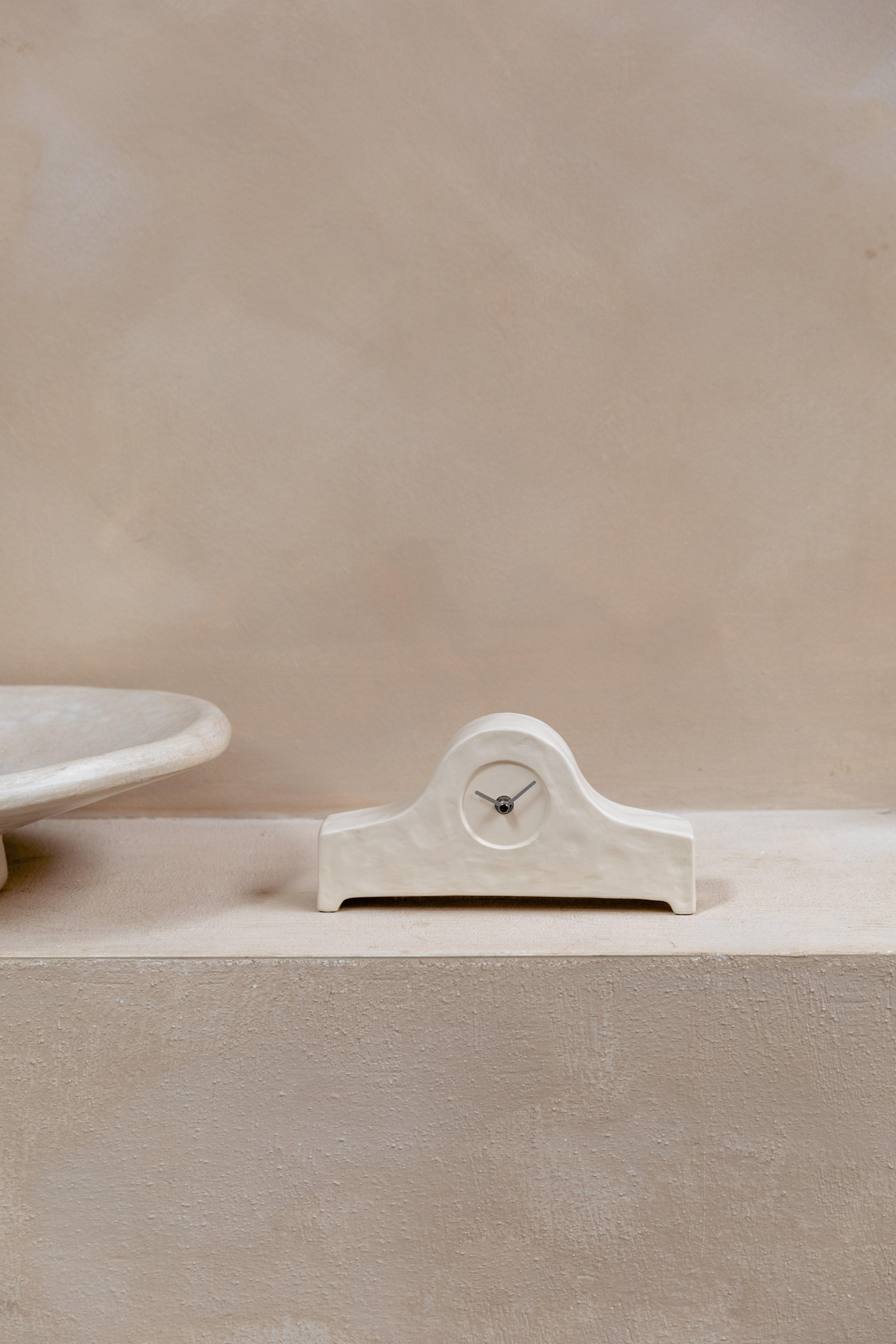 This unique clock, named after his beloved grandmother, will certainly introduce a note of childhood memories. This ceramic version of the traditional, wooden clock adds elegance to any room. Thanks to the slim, silver tips, it not only indicates time, but also is a decorative element. The clock was made of ceramics and equipped with modern, silver, metal tips.