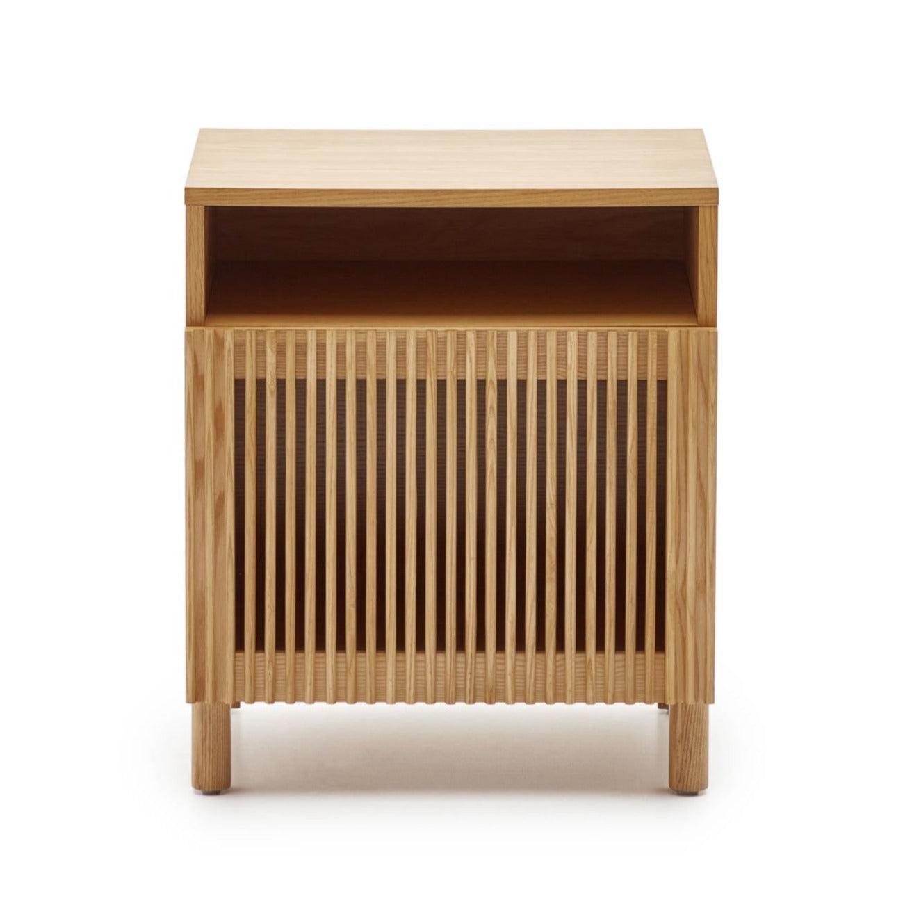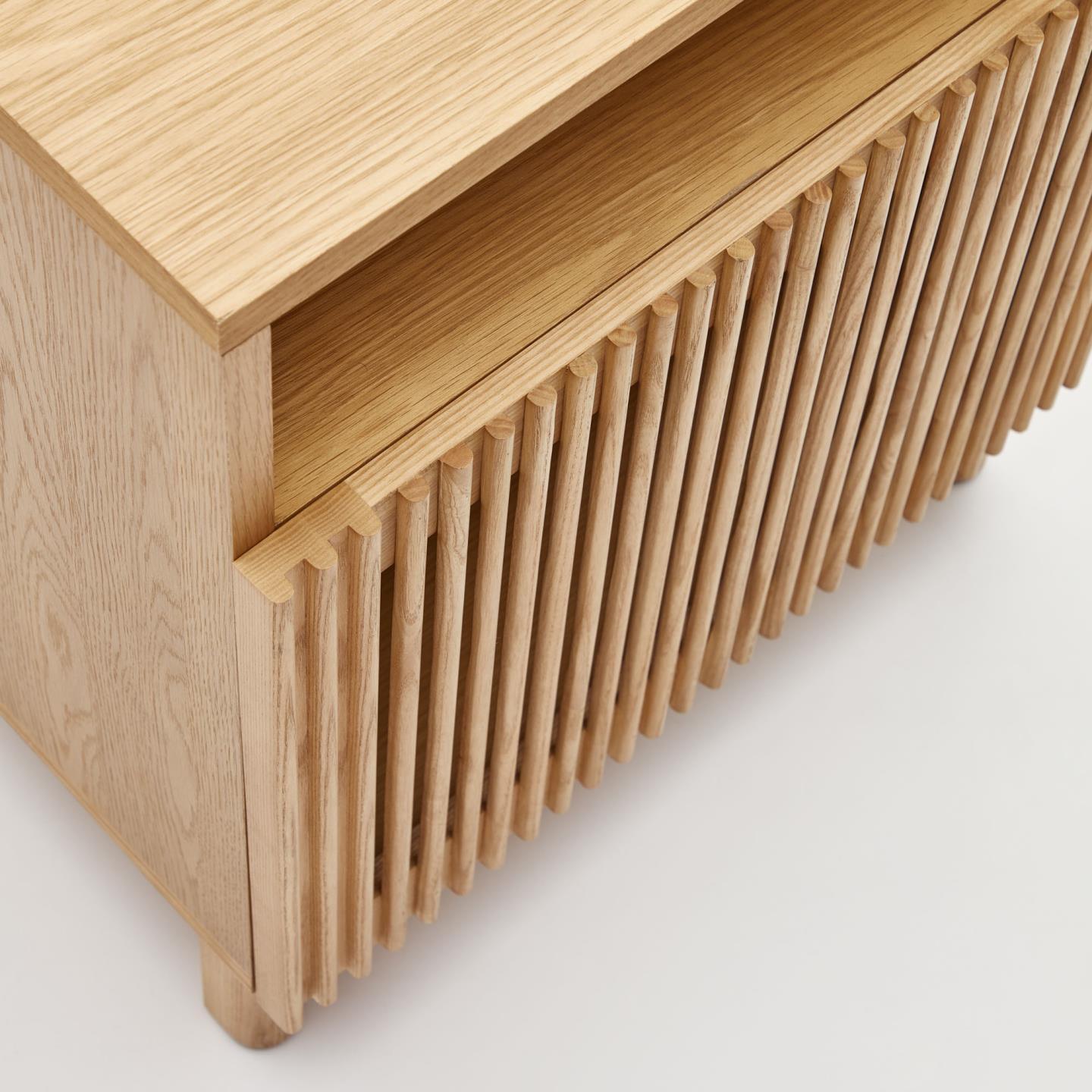 Beyla is a project of the Kave Home team. It combines the natural essence of ash wood with the original strip doors in vertical lines that play with light and texture. We always care about every detail to get an excellent project.