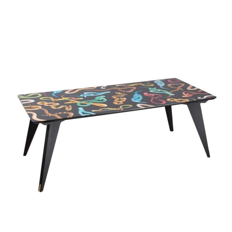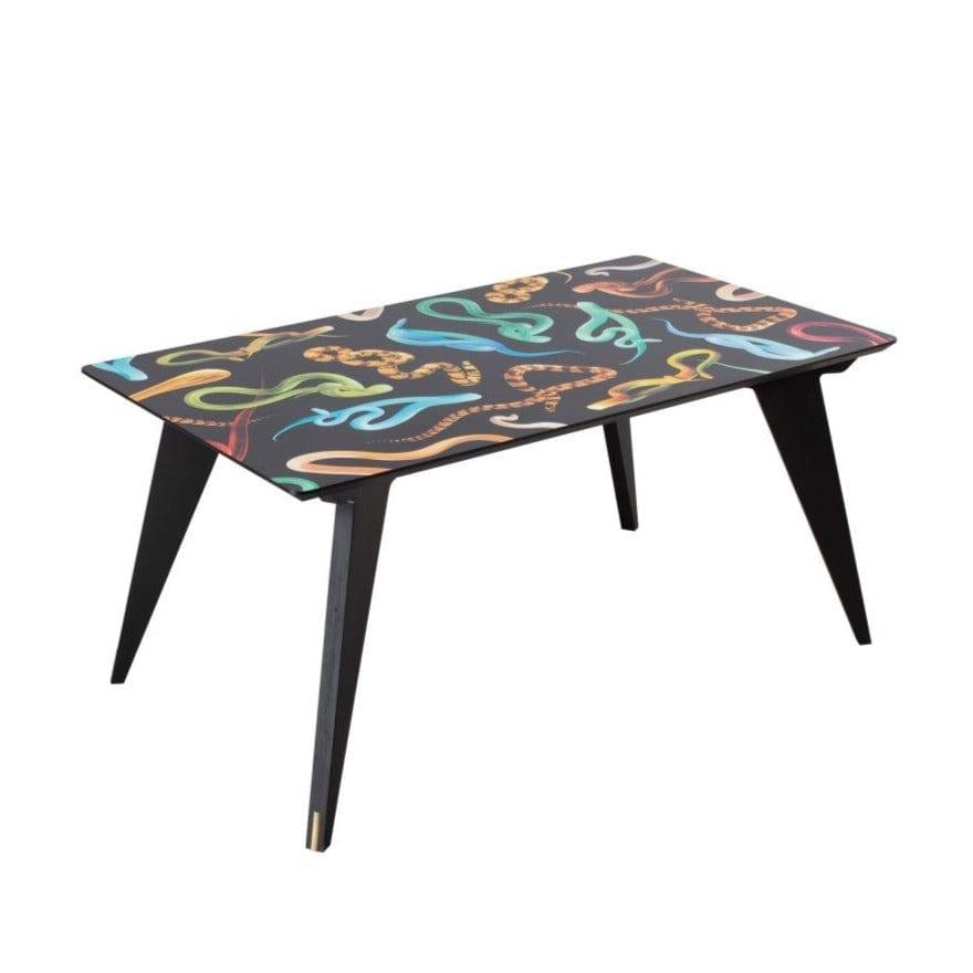 Designer table in the style of the 70s, which Like a gate to another, surreal dimension, it will give the interior a unique character. Distitory legs and a slightly controversial collage on the top create an original work of art. Stayed inConsciently in Italy, which guarantees high quality.