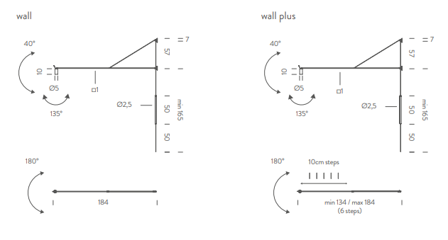 Wall lamp SWAN is a graphic symbol whose expressive lines emphasize its great flexibility and functionality. The thoughtful design and advanced mechanism allow you to extend the lamp arm from 134 cm to 184 cm, while maintaining the linearity and elegance of the project. The adjustable light source offers precise and point lighting. The counterweight, which is a key element of design, is covered with the skin of Testa di Moro, which adds a lamp of a unique character and elegance. Swan is a perfect combination of aesthetics and functionality, ideal for modern interiors.
