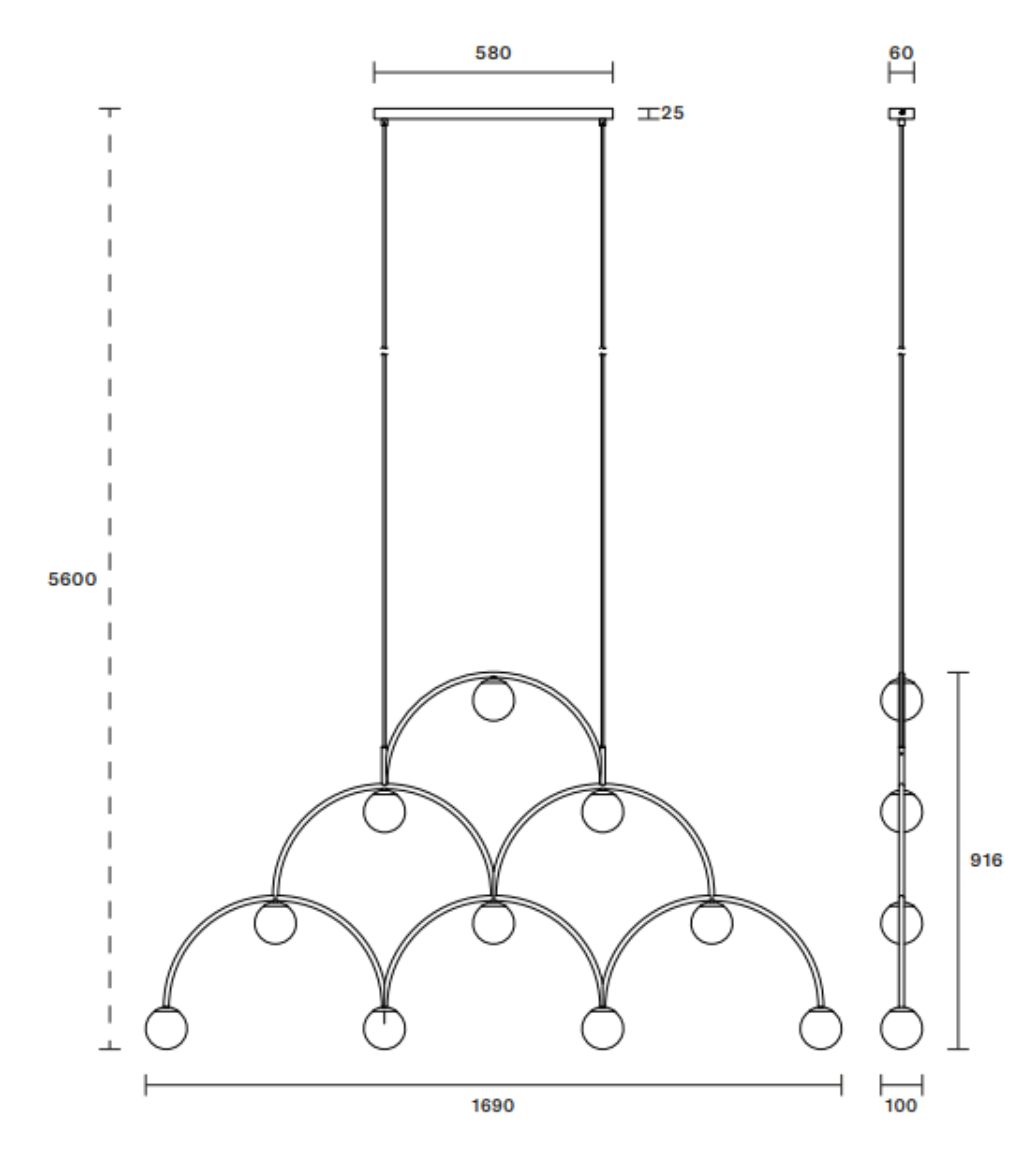 Suspended lamp Bounce Grand is a striking proposal with a graphic, modern form and a strong, dynamic character. Its design is inspired by the flow of energy between light sources, which is reflected in the rhythmic arrangement of arcs ending in spherical shades. Thanks to its thoughtful geometry, the lamp Bounce Grand becomes a distinctive focal point in any interior, drawing the eye and adding a designer touch to the space.