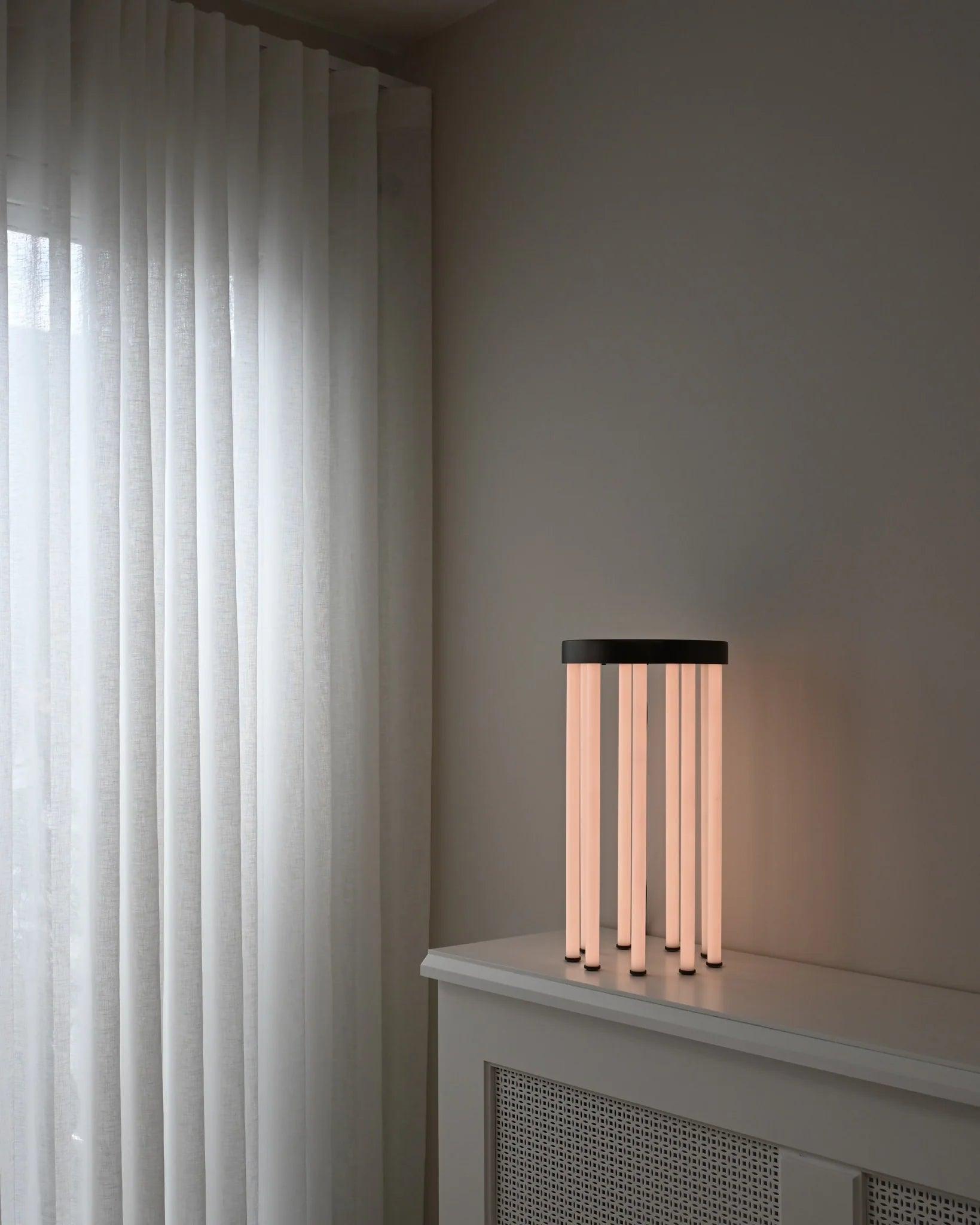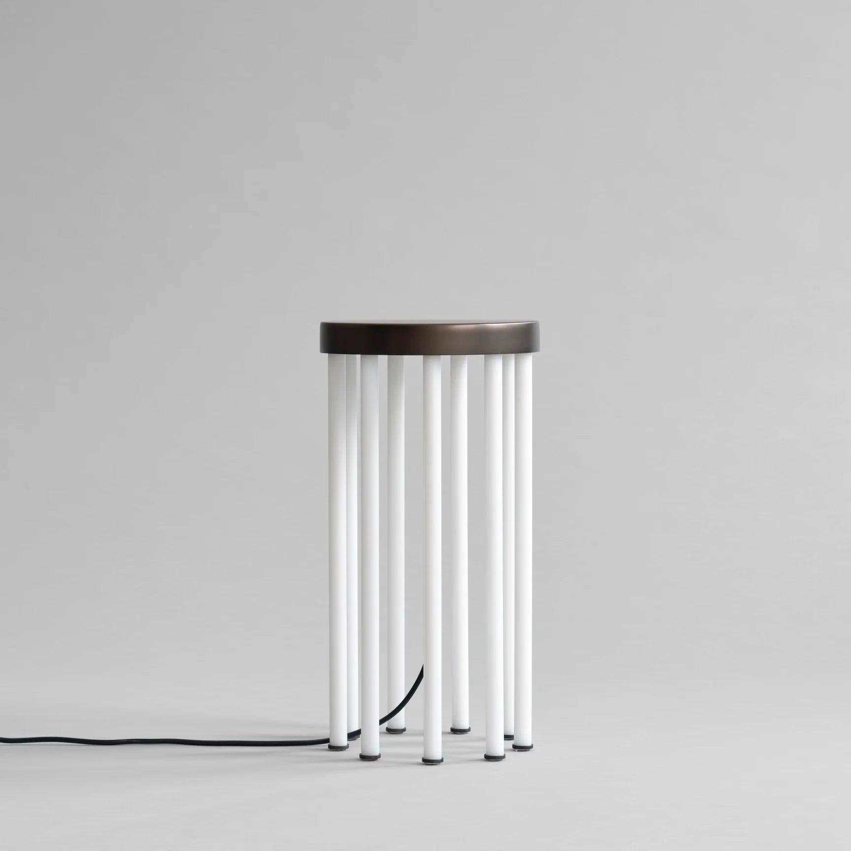 Table The neon is equipped with integrated LED light, which provides unusual 25,000 hours of lighting. In contrast to the typical cool luminescence associated with neon lumination, these lamps have been carefully designed to emit a soft, warm glow, surrounding the space with a cozy atmosphere. The lightweight table design means that it can be easily moved and can be easily connected to the power source with an elegant black cable. All metal elements are covered with sophisticated brown.