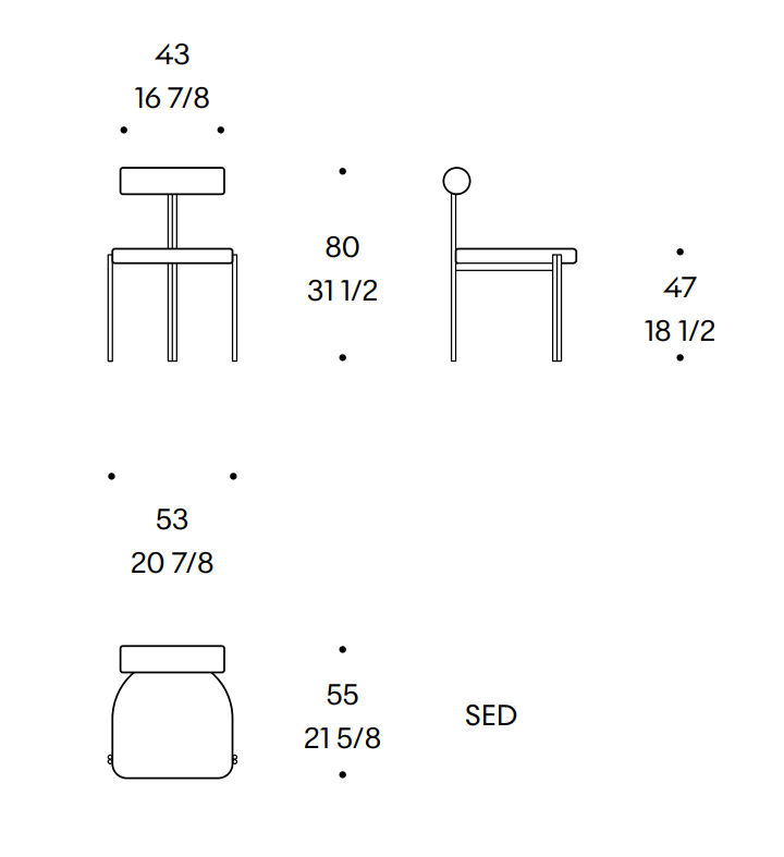 Caillou chair with black dots This is an elegant and comfortable seat that is distinguished by a low and wide support. This unique silhouette is not only recognizable, but also increases the comfort of use, creating a backrest that perfectly supports and envelops the body.