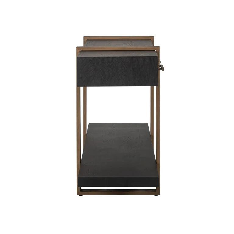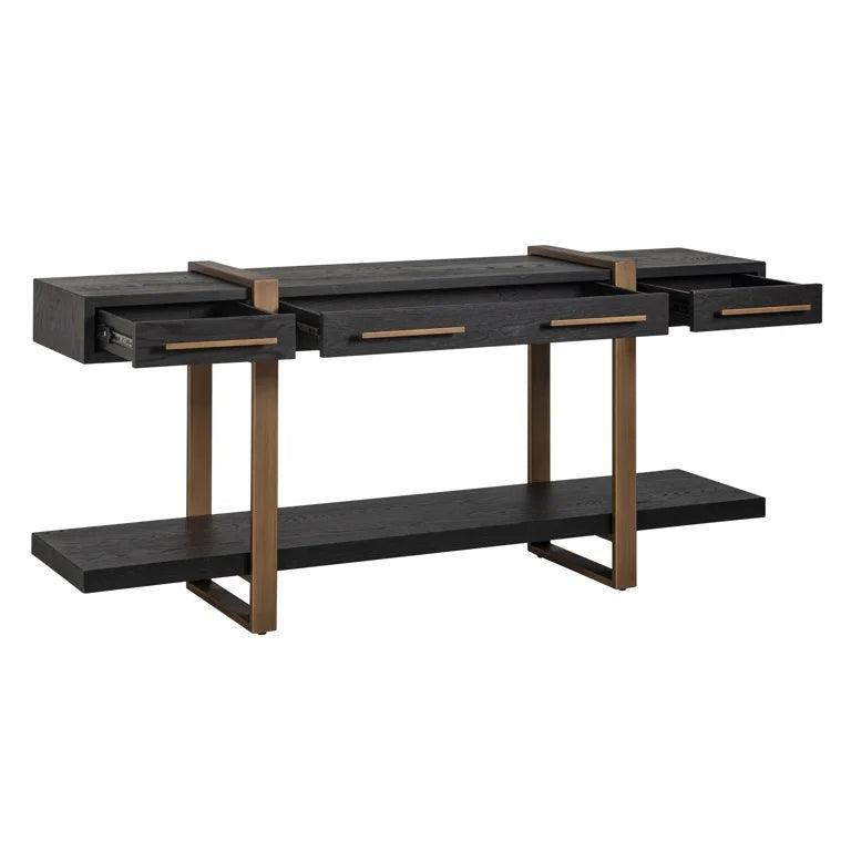Console Cambon exudes style and class. Its performance is based on oak veneer and subtle, brass accents that add charm to this unique furniture. In addition to its aesthetic appearance, the Cambon console is also distinguished by high functionality thanks to three spacious drawers that provide a lot of storage space.