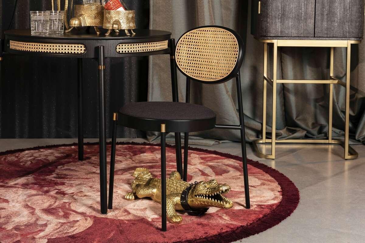 The combination of black, varnished beech wood with a natural, beige rattan shade will work in most interiors. It will be perfect dining room chair, dressing tables in the bedroom or desk in the office.