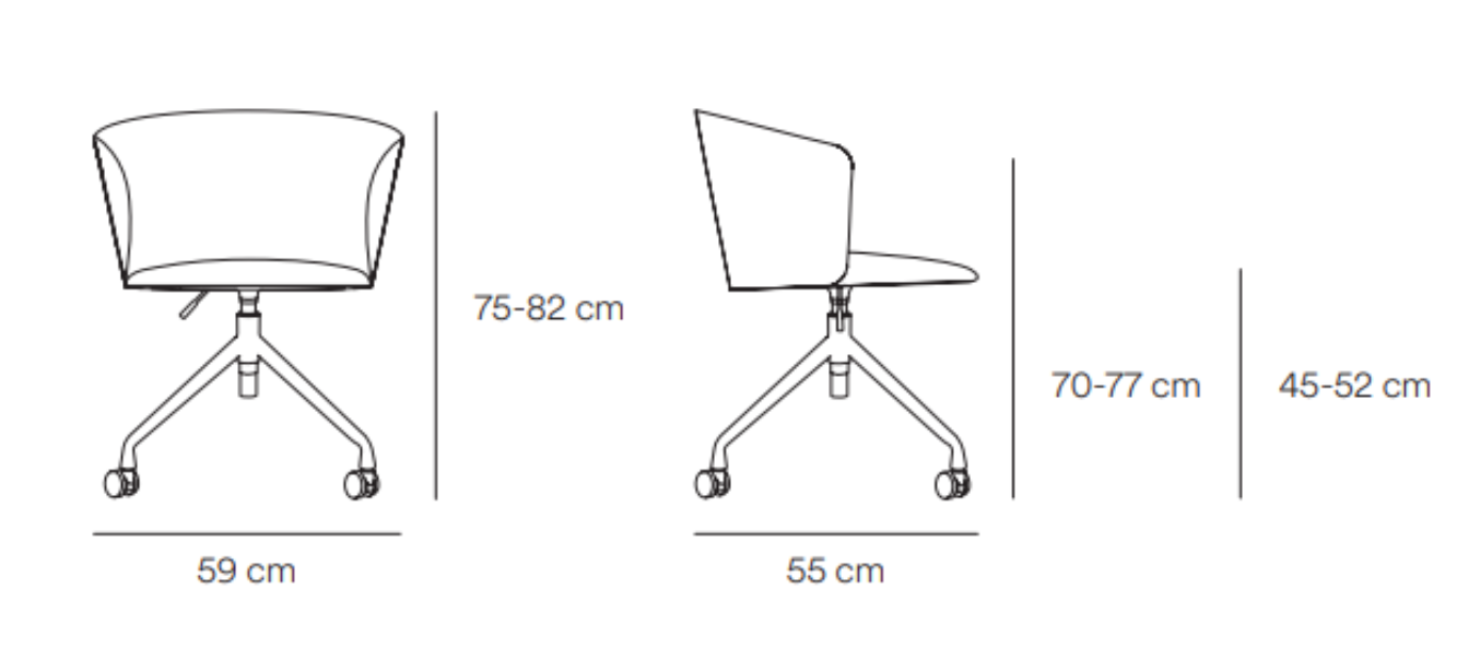 Fully equipped with wheels, chair Add in an intense Terracotty color is a combination of style and practicality. Its metal base allows smoothly rotating around its axis, which provides the user with unlimited freedom of movement. This will be especially appreciated by people spending long hours at the desk or participating in meetings or conferences. The wide seat provides additional comfort, while the upholstered backrest perfectly adapts to the shape of the body, reducing muscle tone and providing support for the spine. The Add chair is not only an aesthetic choice, but above all a practical element of office or public space equipment.