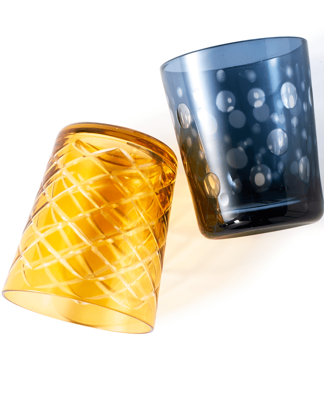 Colorful glasses Cuttings are a set of multicolored vessels that will bring a touch of humor to your interior. The interesting patterns and unusual design of each glass make these models, despite their extraordinary individuality, create a cohesive whole. Glasses Cuttings will be an intriguing addition to a party, as well as an unconventional item for everyday use.