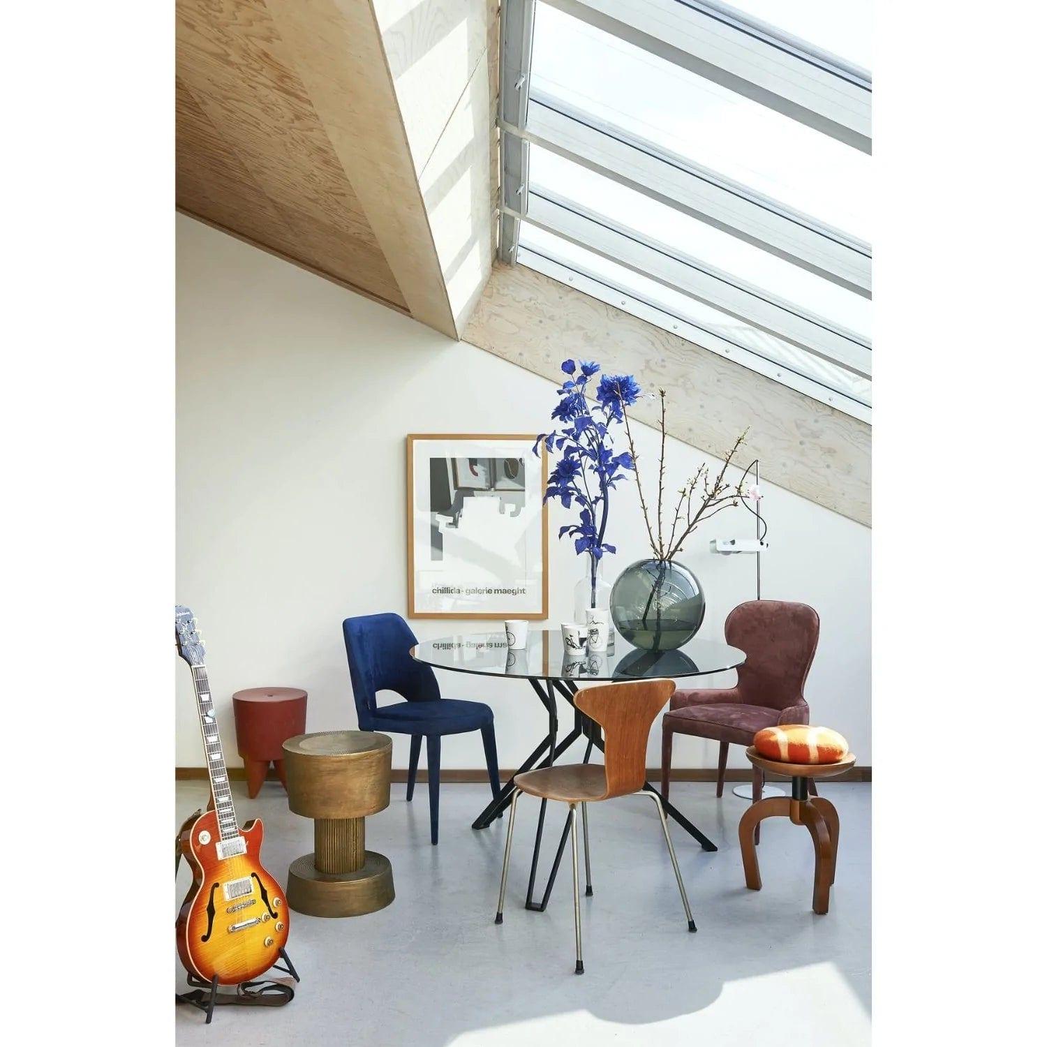 Copper stool Bolt is a multifunctional stool that surprises with its great appearance and excellent craftsmanship. The Bolt stool has been designed specifically for industrial as well as rustic interiors. The aluminum frame is coated with a specialized, antique brass that is not only striking but also durable. The sculpted base featuring distinctive indentations adds class and elegance to the stool.
